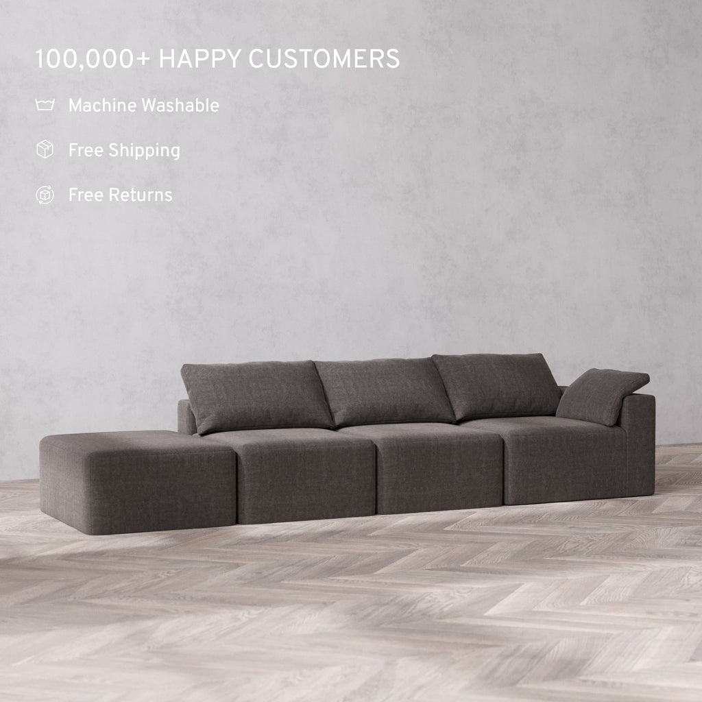 Machine Washable: Every piece of fabric—including the internal quilted duvet—is fully removable and machine washable. It’s the only Cloud-style sofa you can truly deep clean, effortlessly.