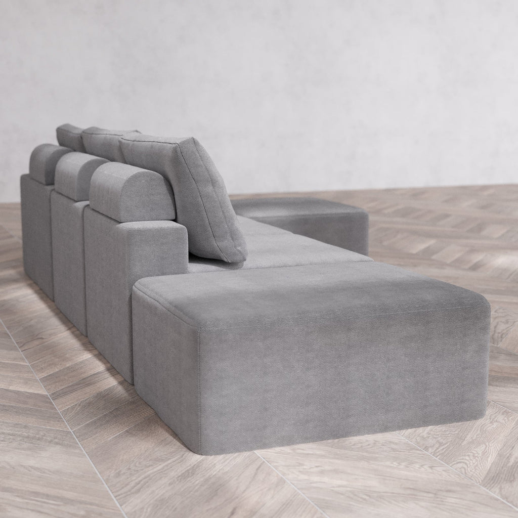 Modular Washable 3-Seater Open End Sectional Cloud + Bolster Sofa | Right-Facing Arm | Lux Weave in Slate