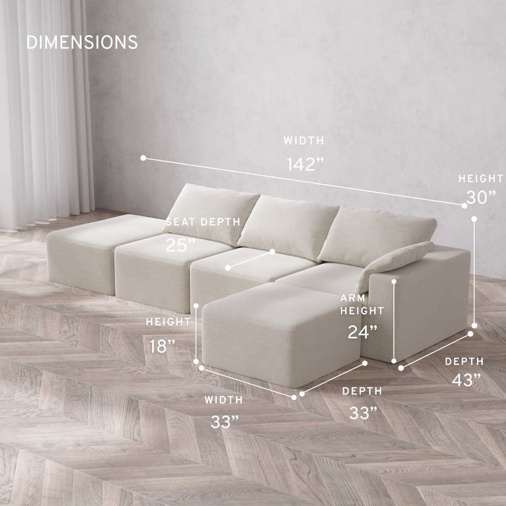 Machine Washable: Every piece of fabric—including the internal quilted duvet—is fully removable and machine washable. It’s the only Cloud-style sofa you can truly deep clean, effortlessly.