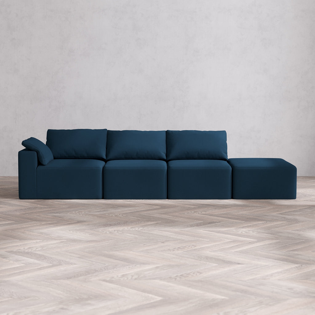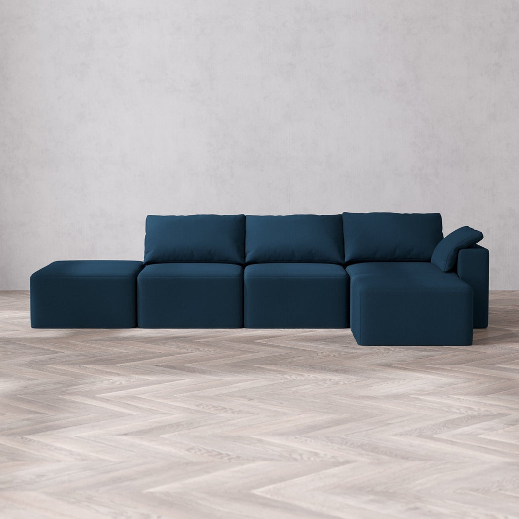 Modular Washable 3-Seater Open End Sectional Cloud Sofa | Right-Facing Arm | Arden Weave in Lazuli