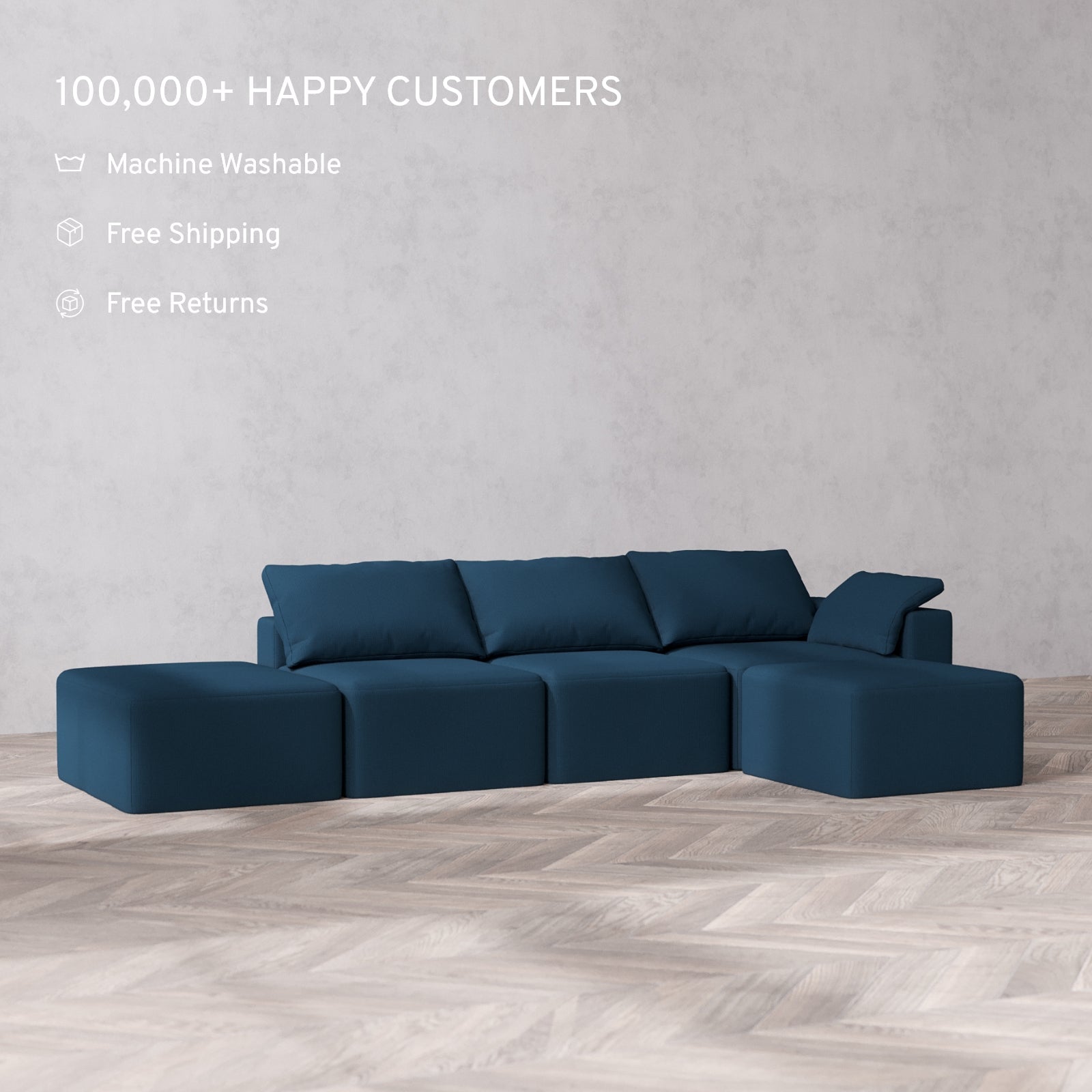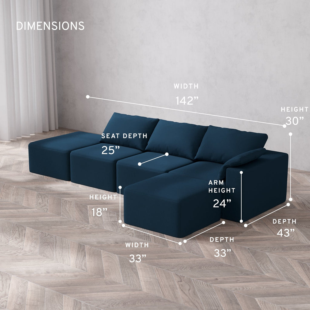 Machine Washable: Every piece of fabric—including the internal quilted duvet—is fully removable and machine washable. It’s the only Cloud-style sofa you can truly deep clean, effortlessly.