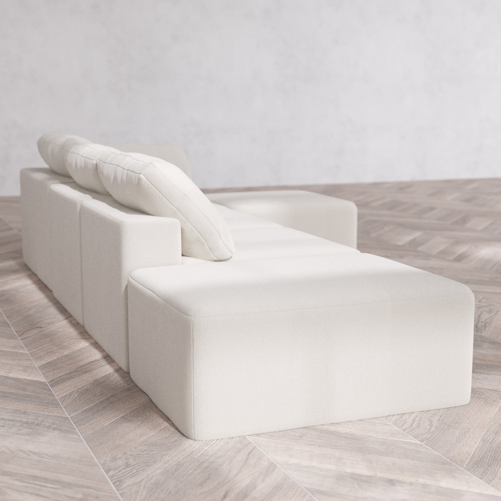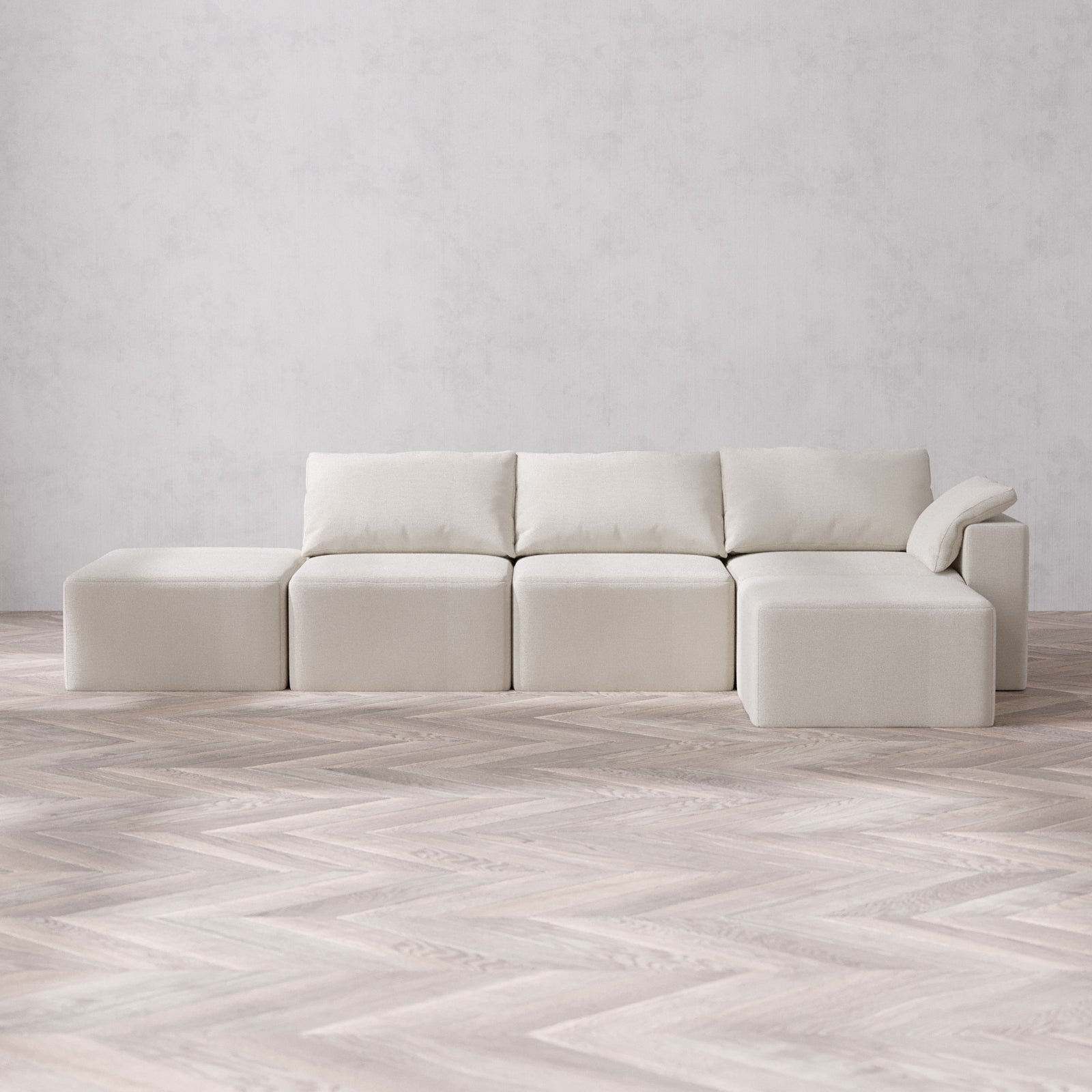 Modular Washable 3-Seater Open End Sectional Cloud Sofa | Right-Facing Arm | Lux Weave in Pearl