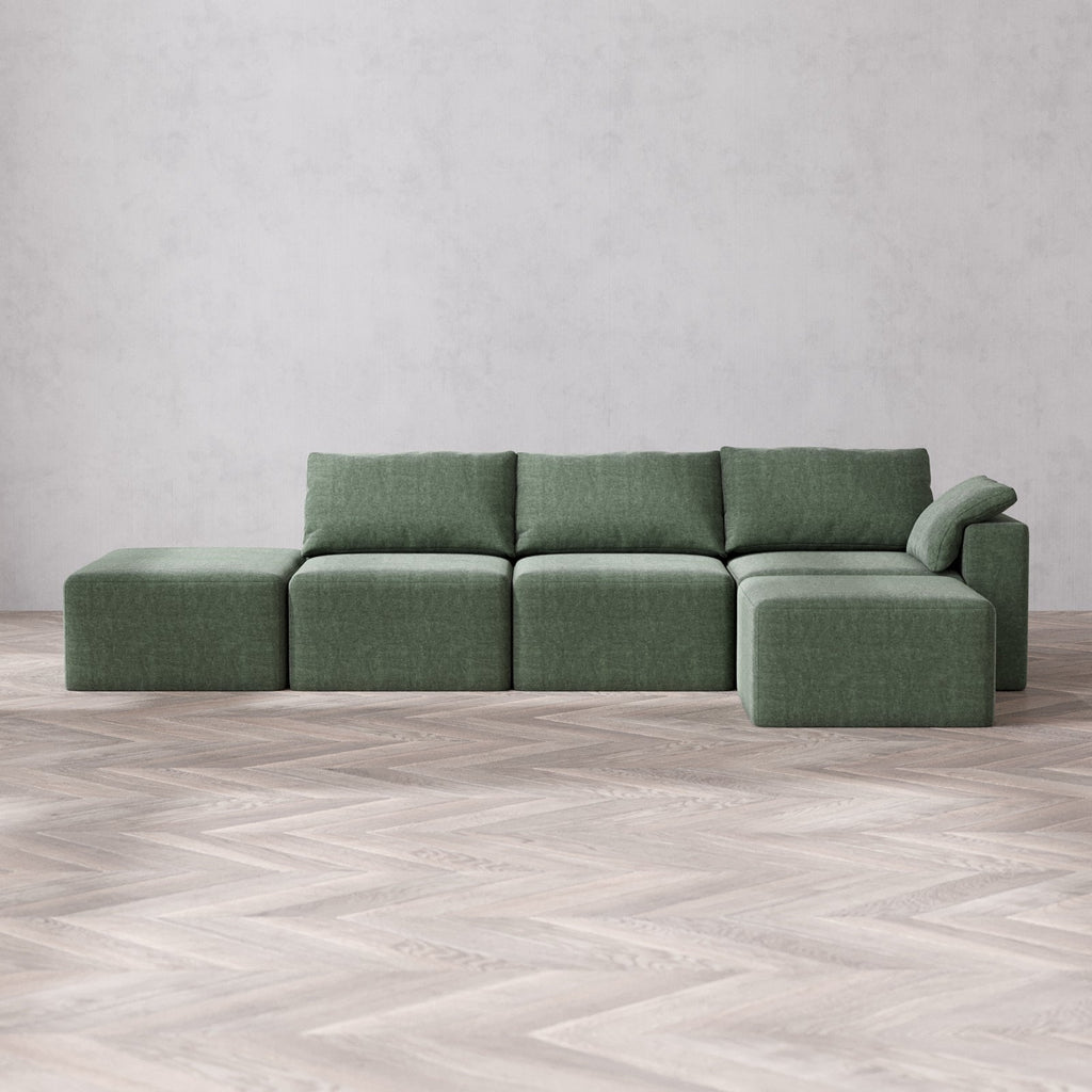 Modular Washable 3-Seater Open End Sectional Cloud Sofa | Right-Facing Arm | Heirloom Velvet in Sage