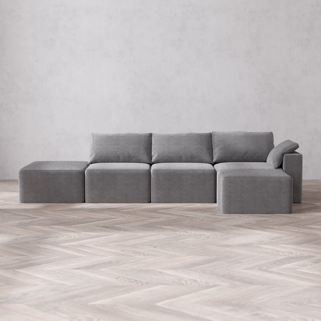 Modular Washable 3-Seater Open End Sectional Cloud Sofa | Right-Facing Arm | Lux Weave in Slate