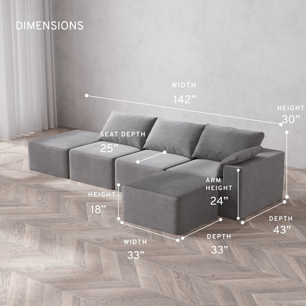 Machine Washable: Every piece of fabric—including the internal quilted duvet—is fully removable and machine washable. It’s the only Cloud-style sofa you can truly deep clean, effortlessly.