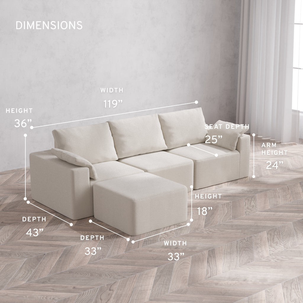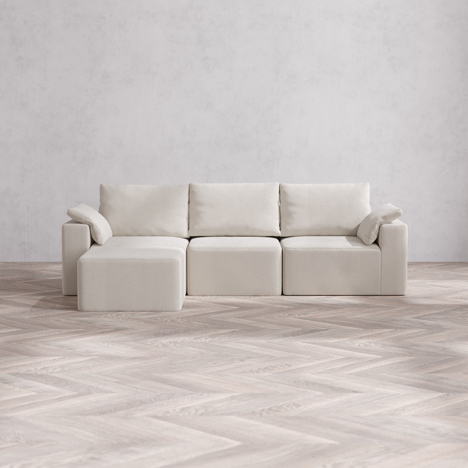 Modular Washable 3-Seater Sectional Cloud + Bolster Sofa | Lux Weave in Pearl
