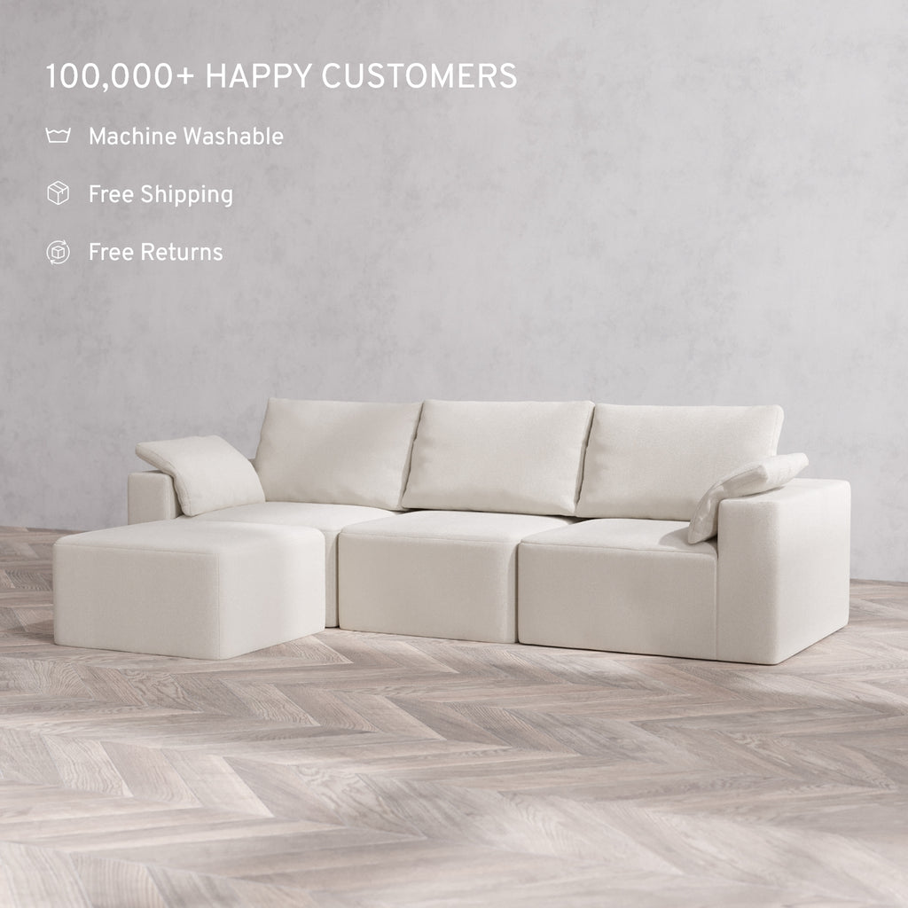 The Only Washable Cloud Sofa: With a waterproof frame and fabrics that resist pets, stains, and spills, this sofa is made to handle everyday messes. Our patent-pending covers are machine washable and fully interchangeable—buy extra sets to change up your look anytime.