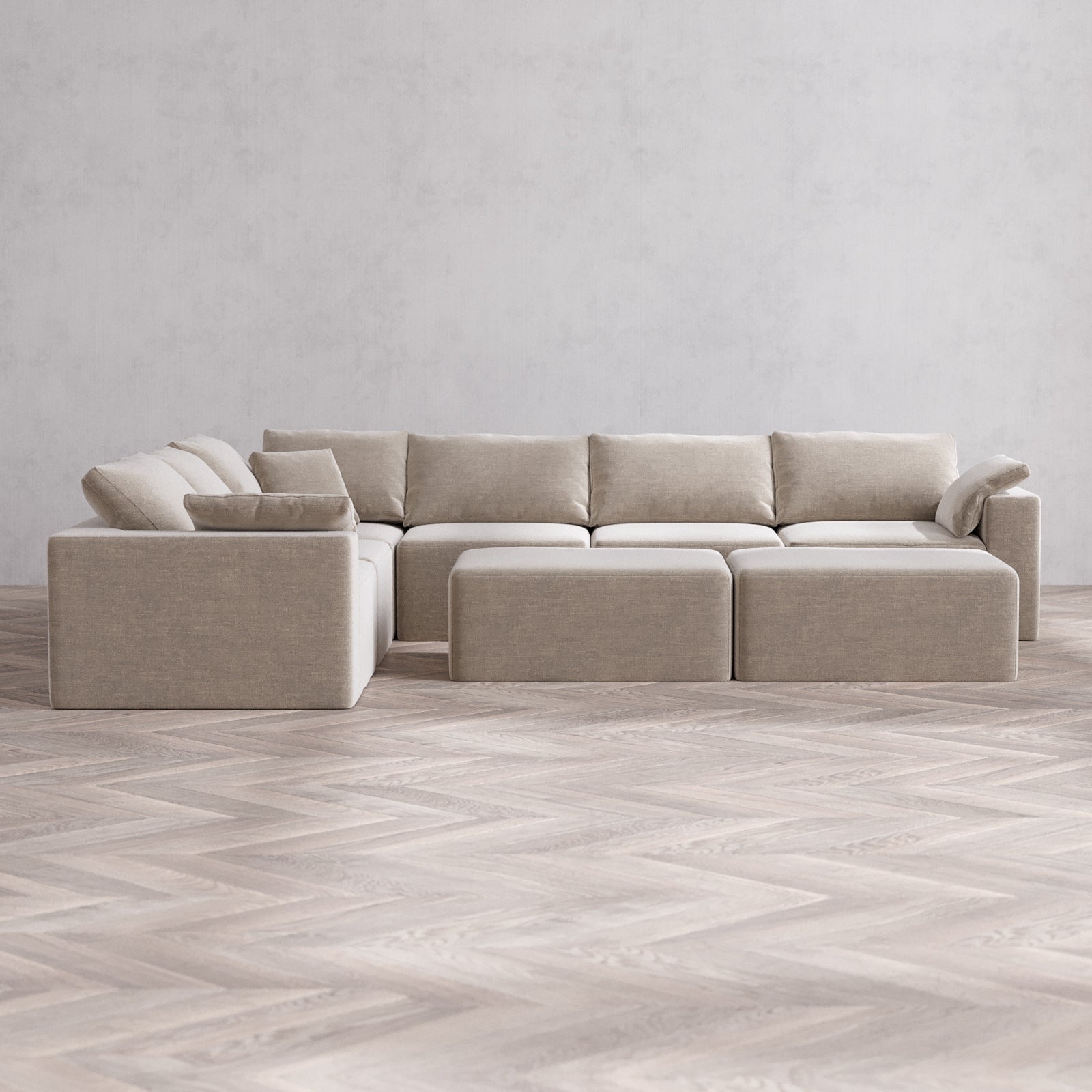 Modular Washable 6-Seater Corner Sectional + Chaise Ottoman Bench Cloud Sofa | Satin Velvet in Caraway