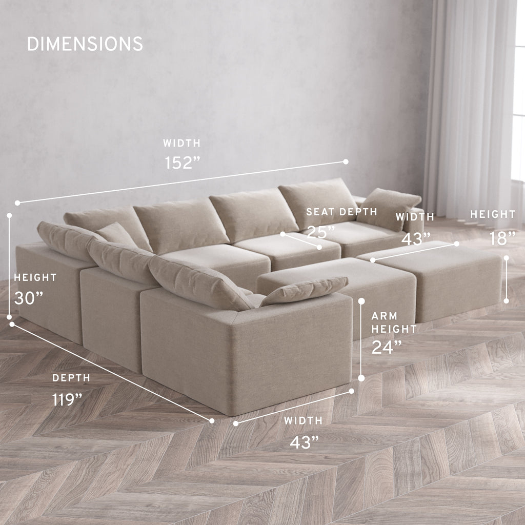Machine Washable: Every piece of fabric—including the internal quilted duvet—is fully removable and machine washable. It’s the only Cloud-style sofa you can truly deep clean, effortlessly.