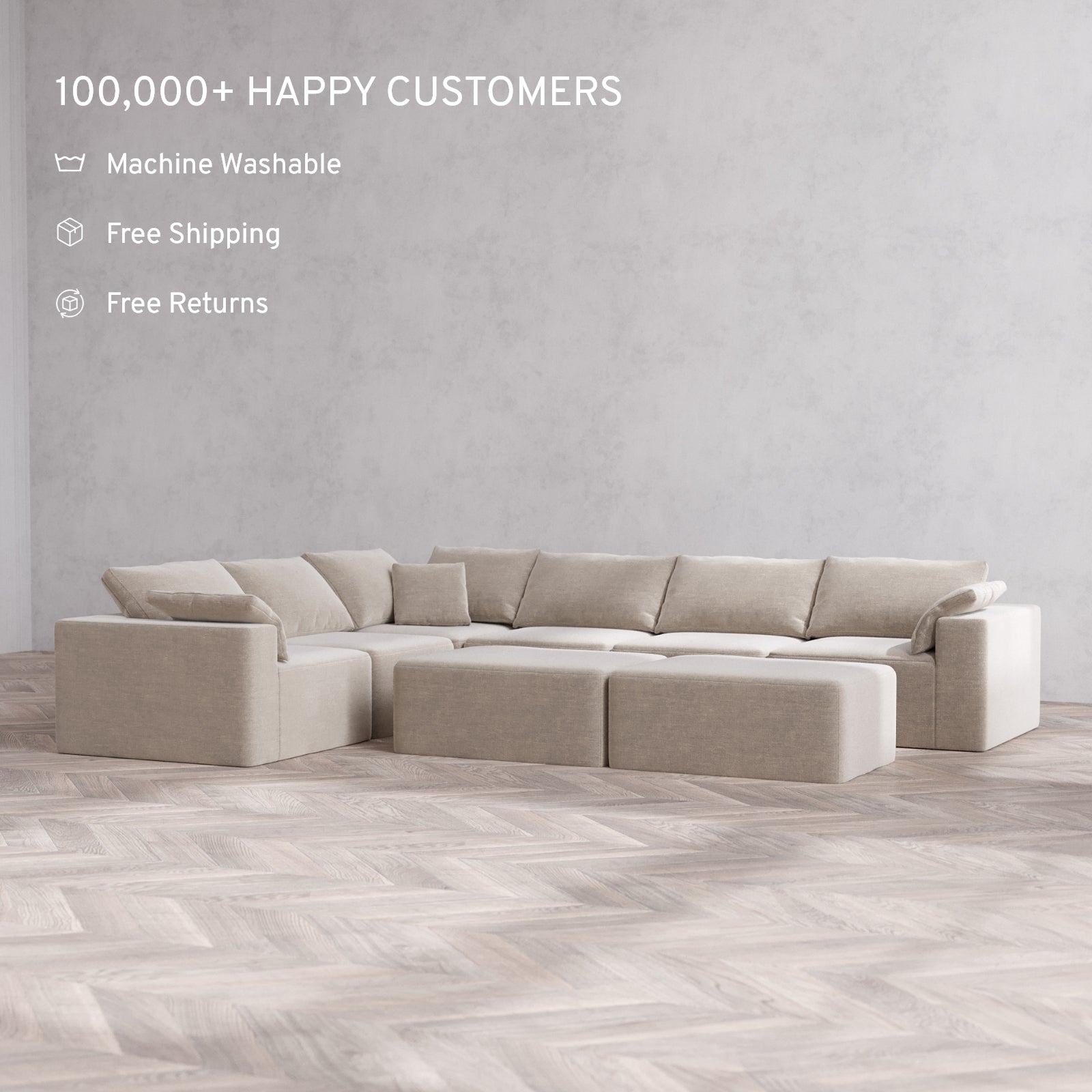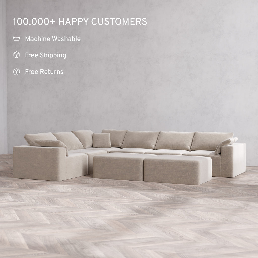 The Only Washable Cloud Sofa: With a waterproof frame and fabrics that resist pets, stains, and spills, this sofa is made to handle everyday messes. Our patent-pending covers are machine washable and fully interchangeable—buy extra sets to change up your look anytime.