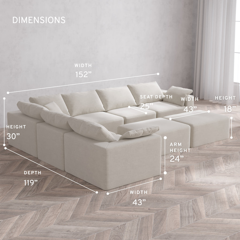Machine Washable: Every piece of fabric—including the internal quilted duvet—is fully removable and machine washable. It’s the only Cloud-style sofa you can truly deep clean, effortlessly.