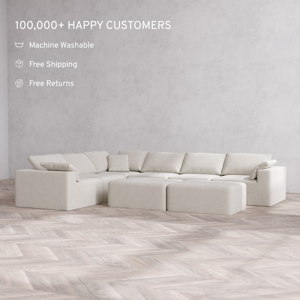The Only Washable Cloud Sofa: With a waterproof frame and fabrics that resist pets, stains, and spills, this sofa is made to handle everyday messes. Our patent-pending covers are machine washable and fully interchangeable—buy extra sets to change up your look anytime.