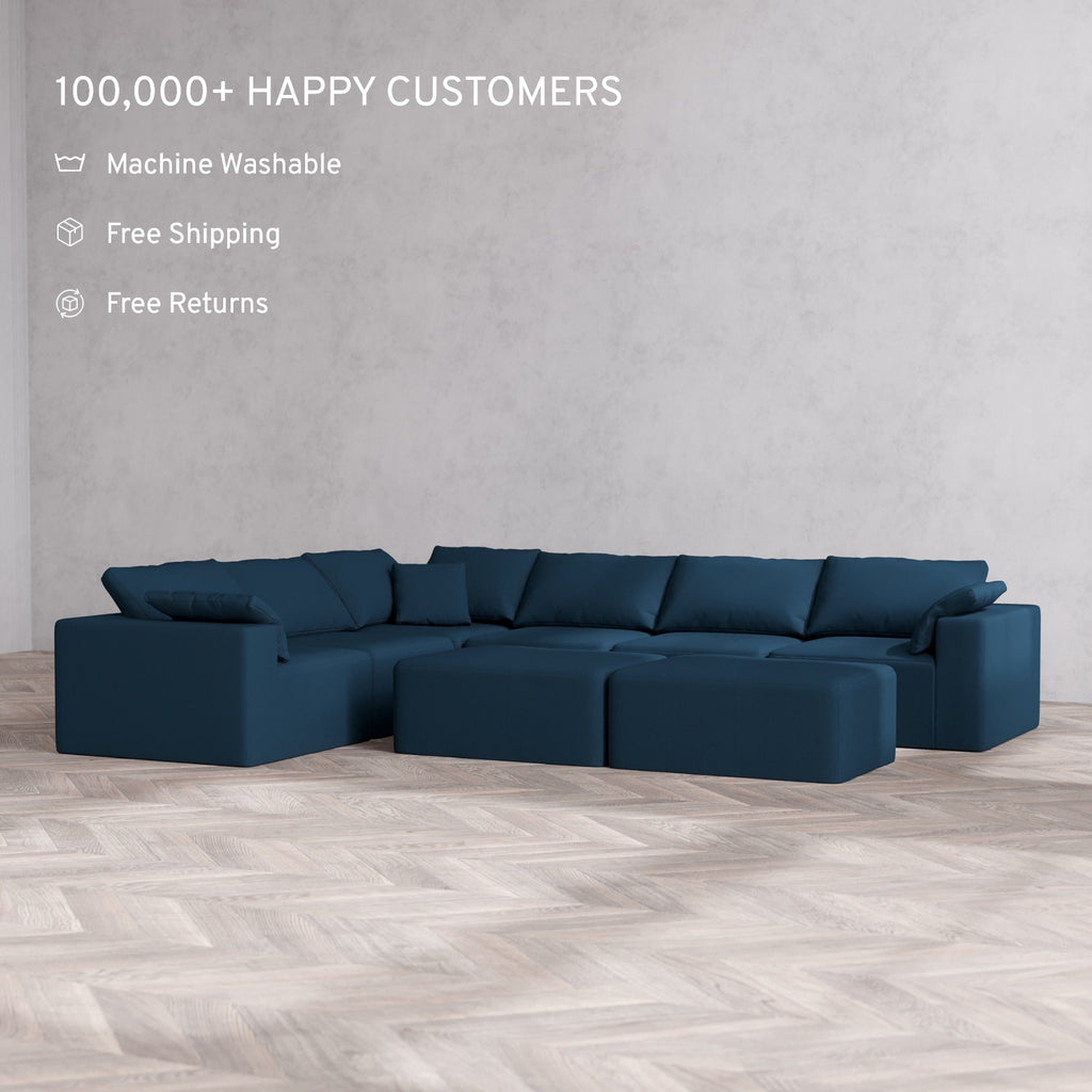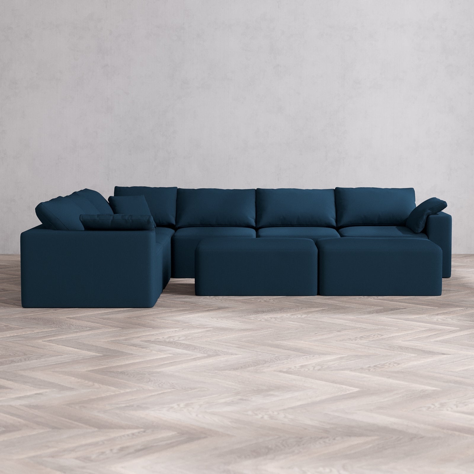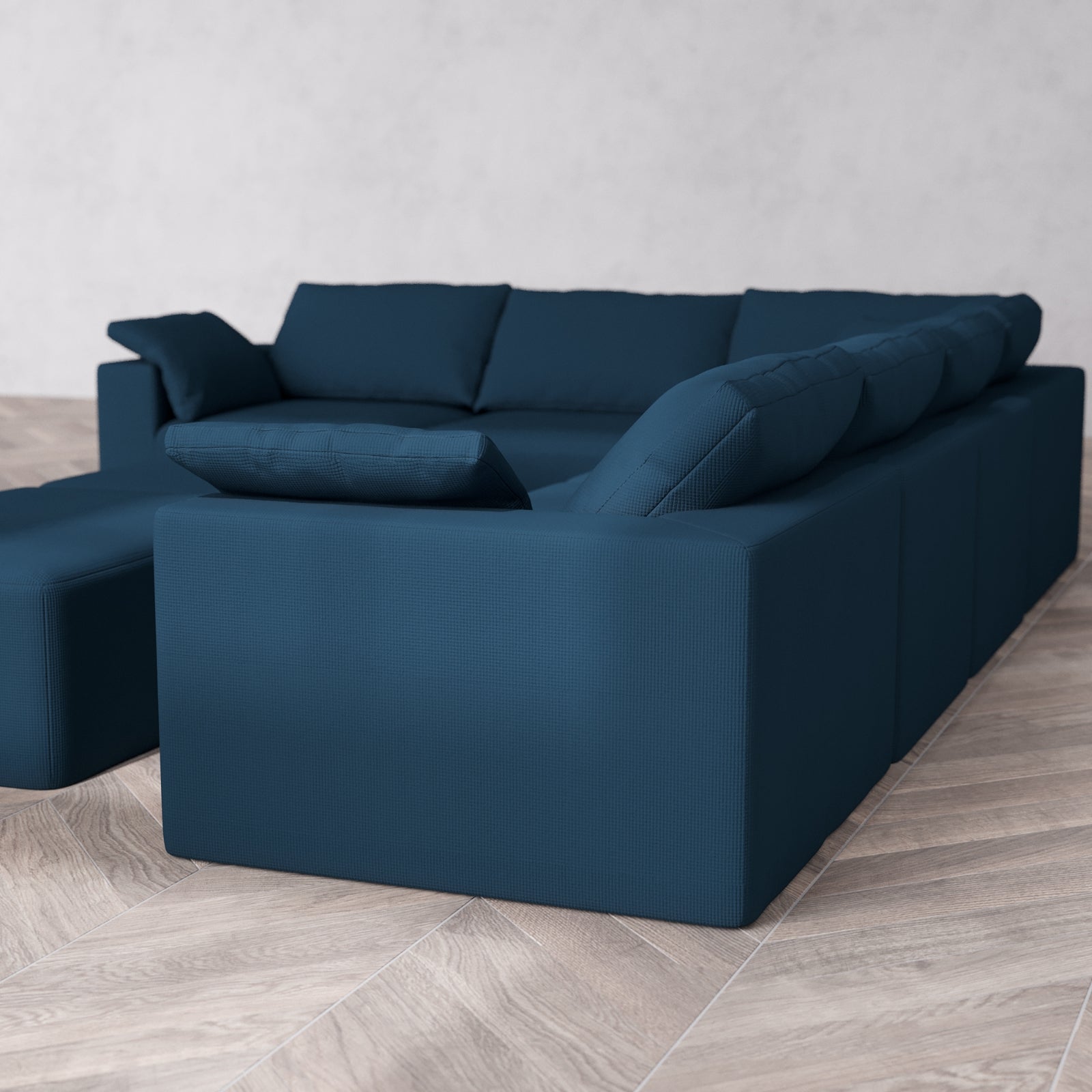 Modular Washable 6-Seater Corner Sectional + Chaise Ottoman Bench Cloud Sofa | Arden Weave in Lazuli