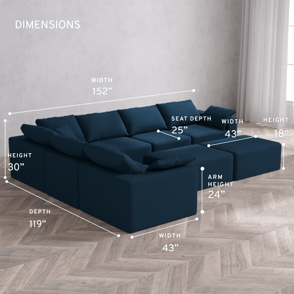 Machine Washable: Every piece of fabric—including the internal quilted duvet—is fully removable and machine washable. It’s the only Cloud-style sofa you can truly deep clean, effortlessly.