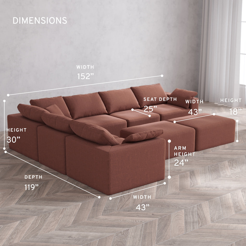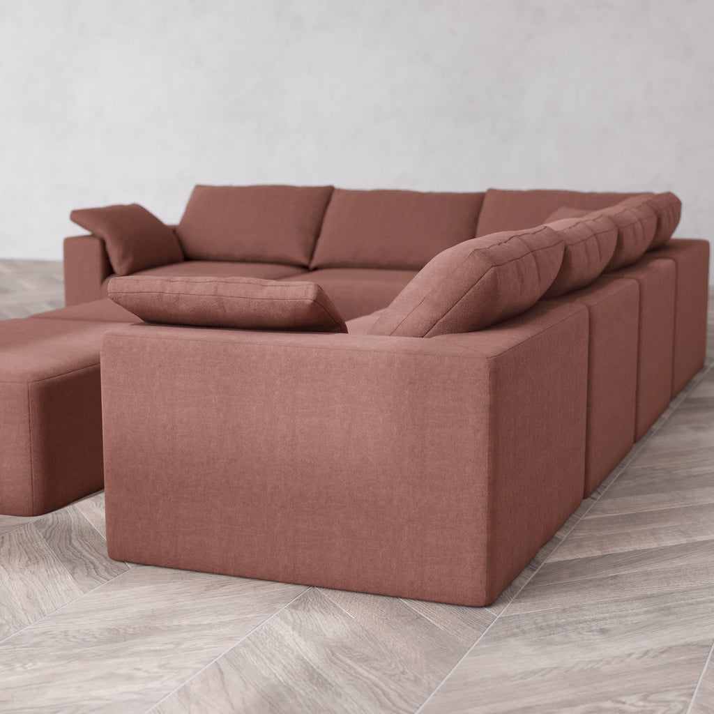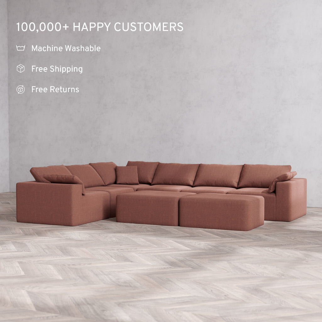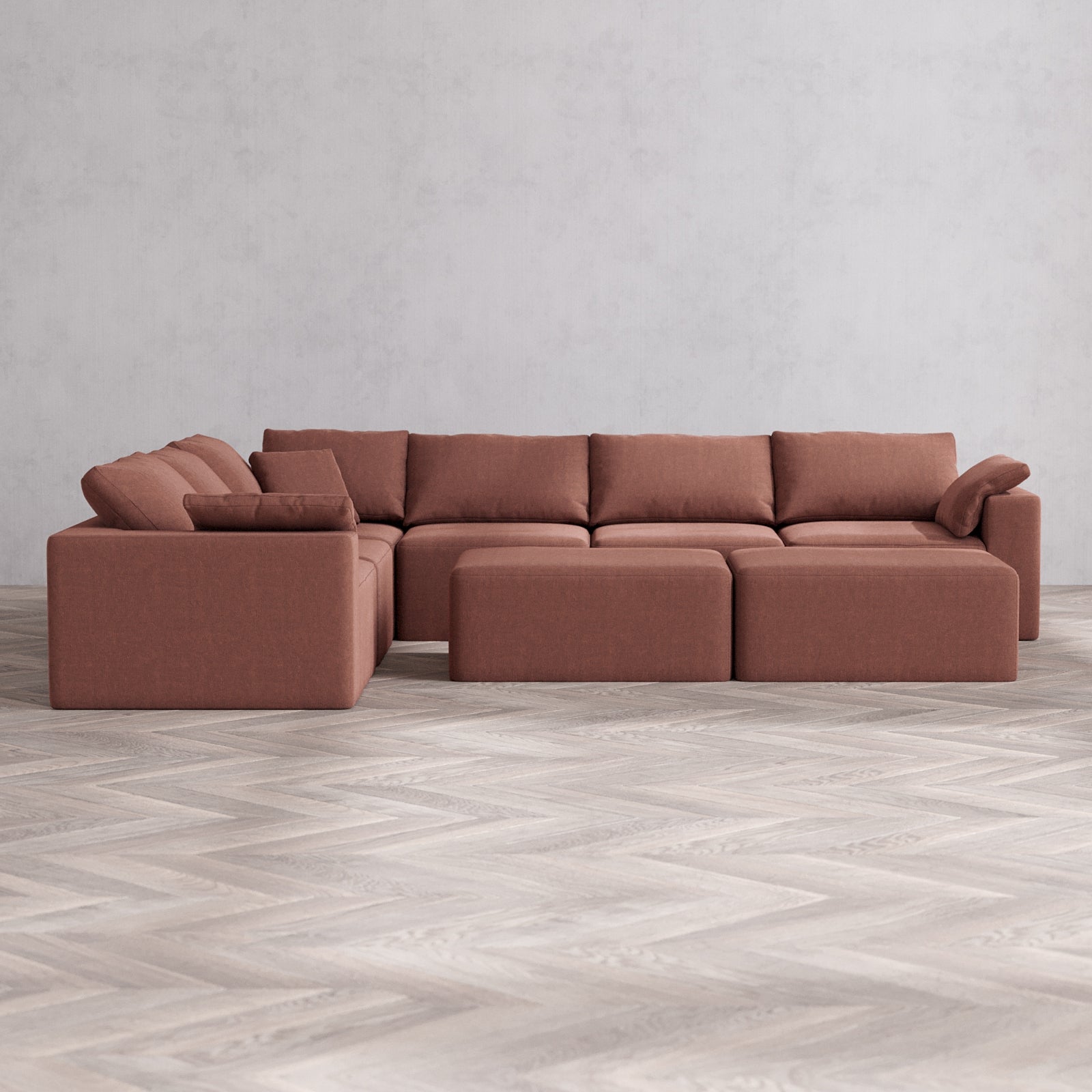 Modular Washable 6-Seater Corner Sectional + Chaise Ottoman Bench Cloud Sofa | Heirloom Velvet in Sumac