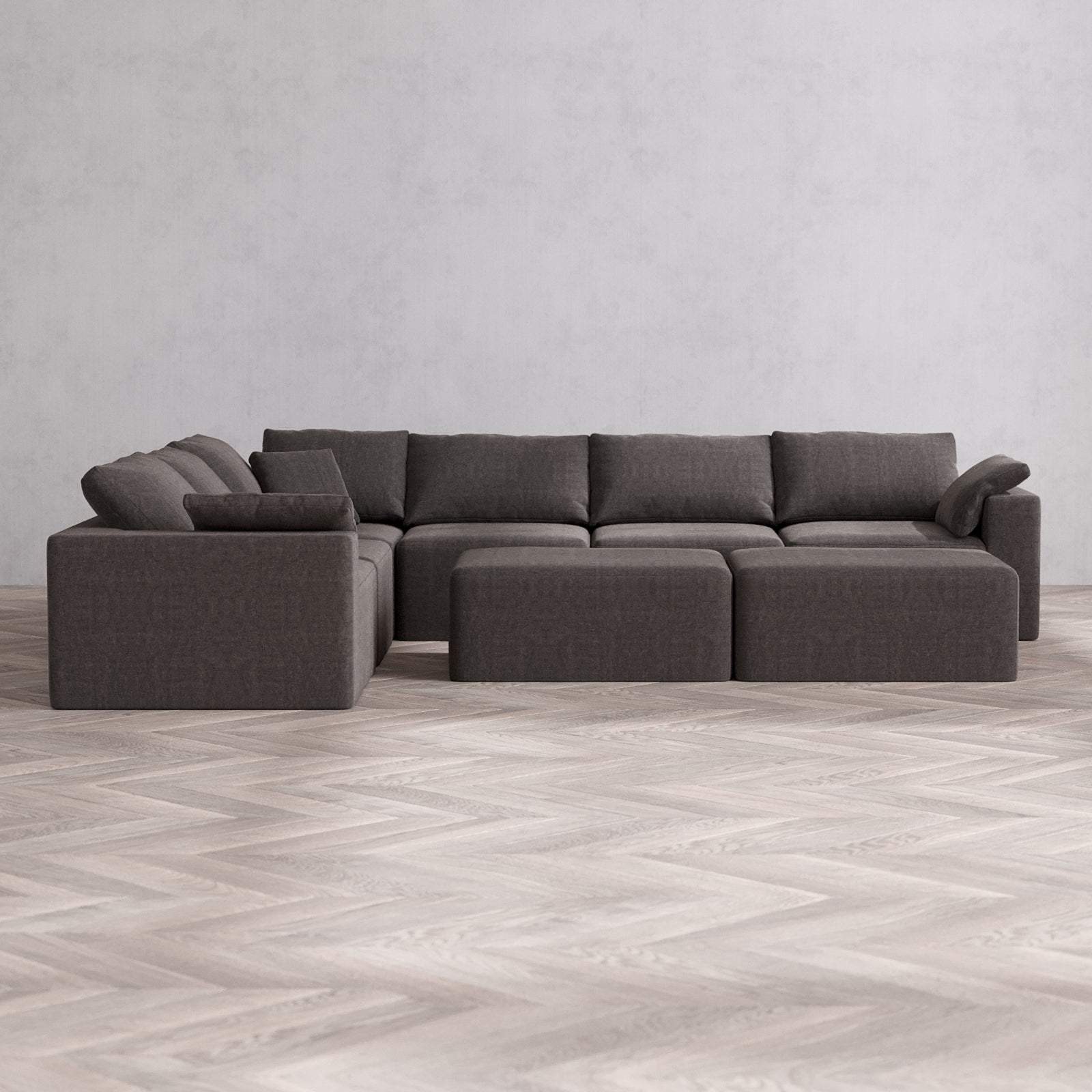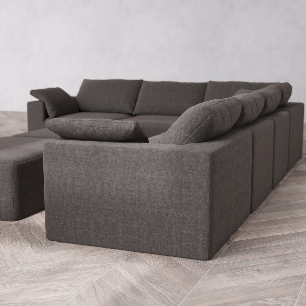 Modular Washable 6-Seater Corner Sectional + Chaise Ottoman Bench Cloud Sofa | Heirloom Velvet in Truffle