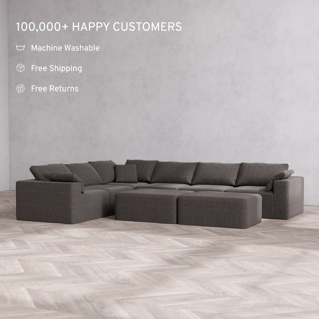 The Only Washable Cloud Sofa: With a waterproof frame and fabrics that resist pets, stains, and spills, this sofa is made to handle everyday messes. Our patent-pending covers are machine washable and fully interchangeable—buy extra sets to change up your look anytime.