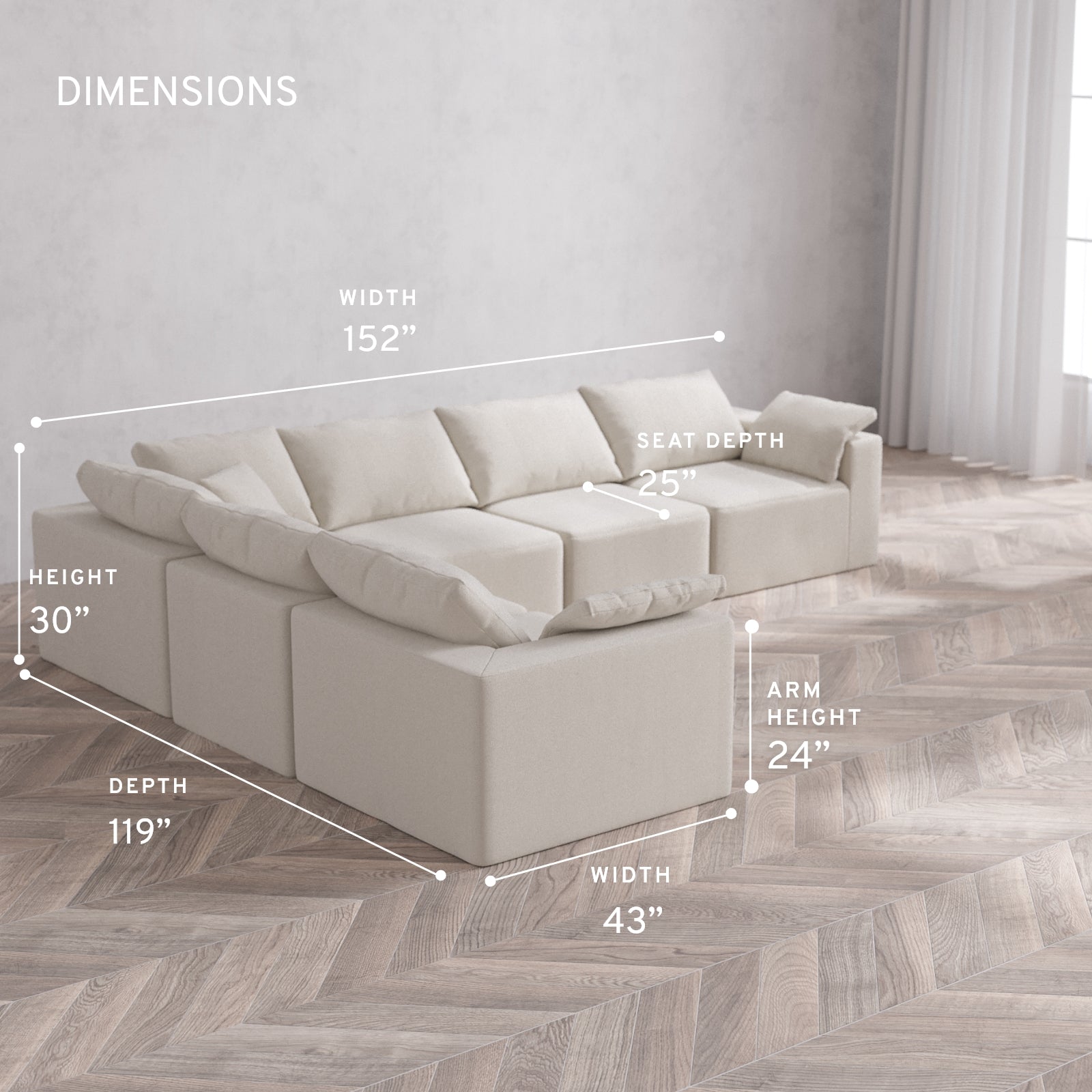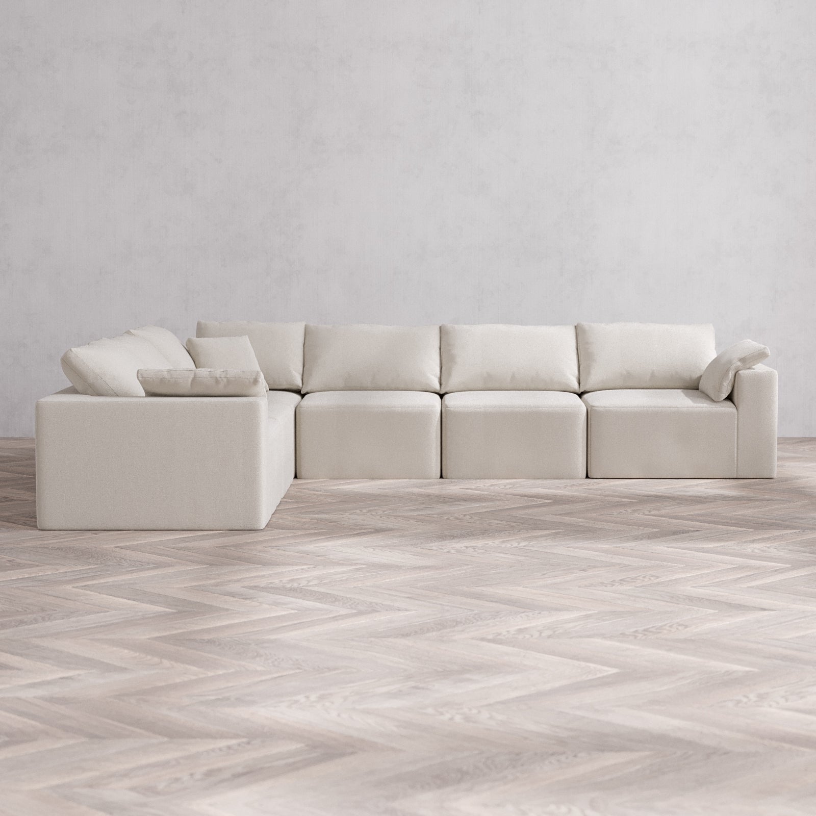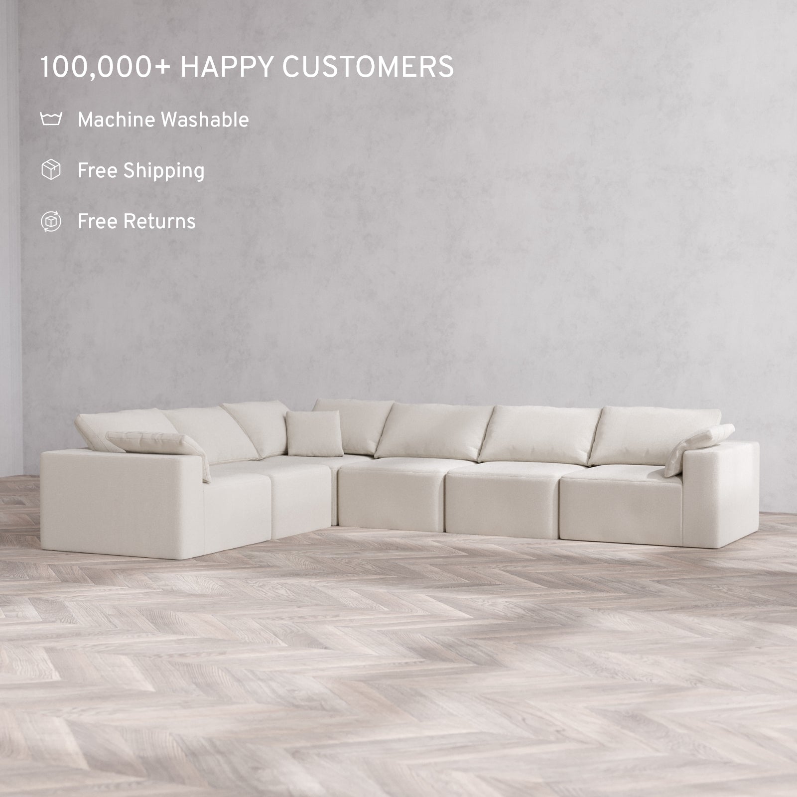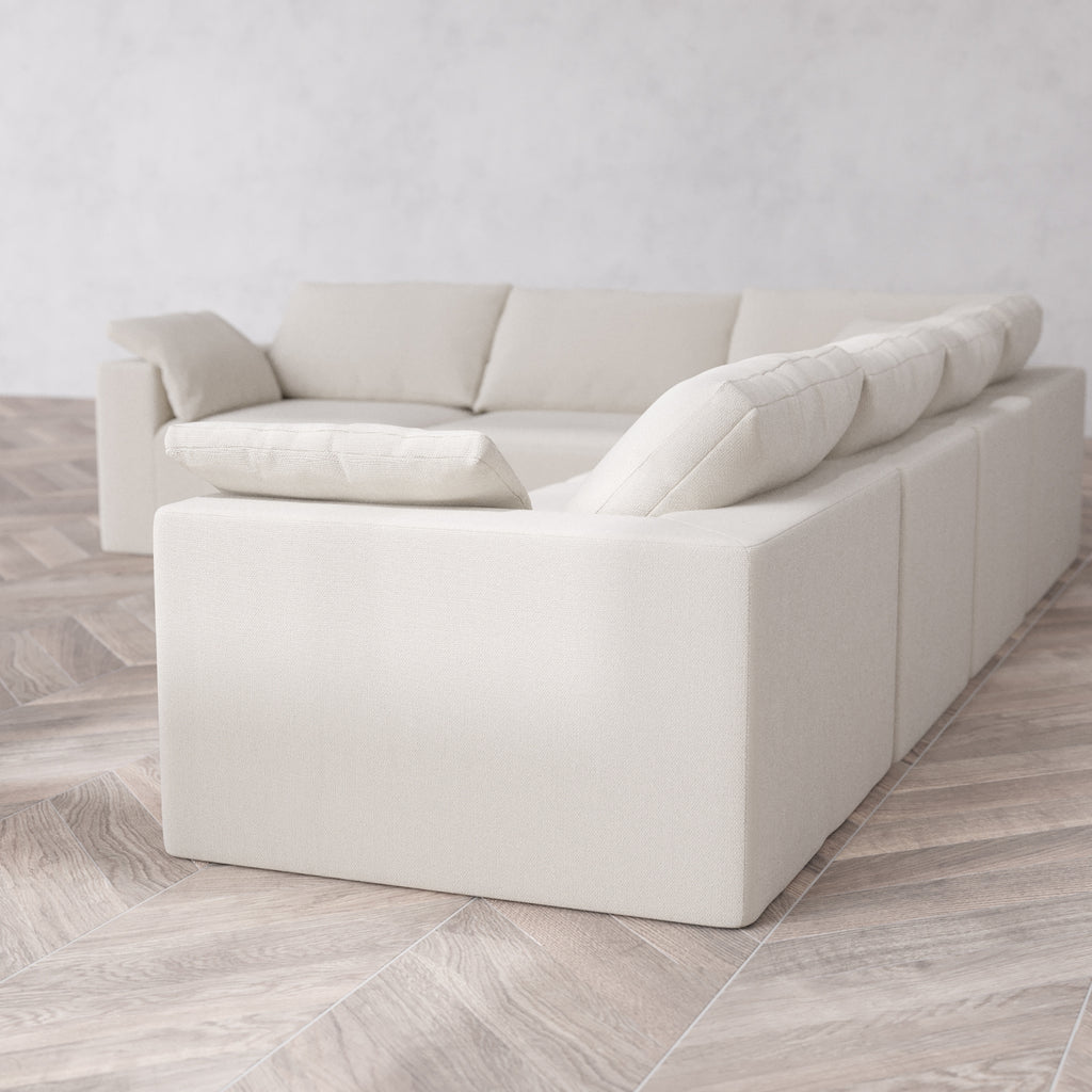 Modular Washable 6-Seater Corner Sectional Cloud Sofa | Lux Weave in Pearl
