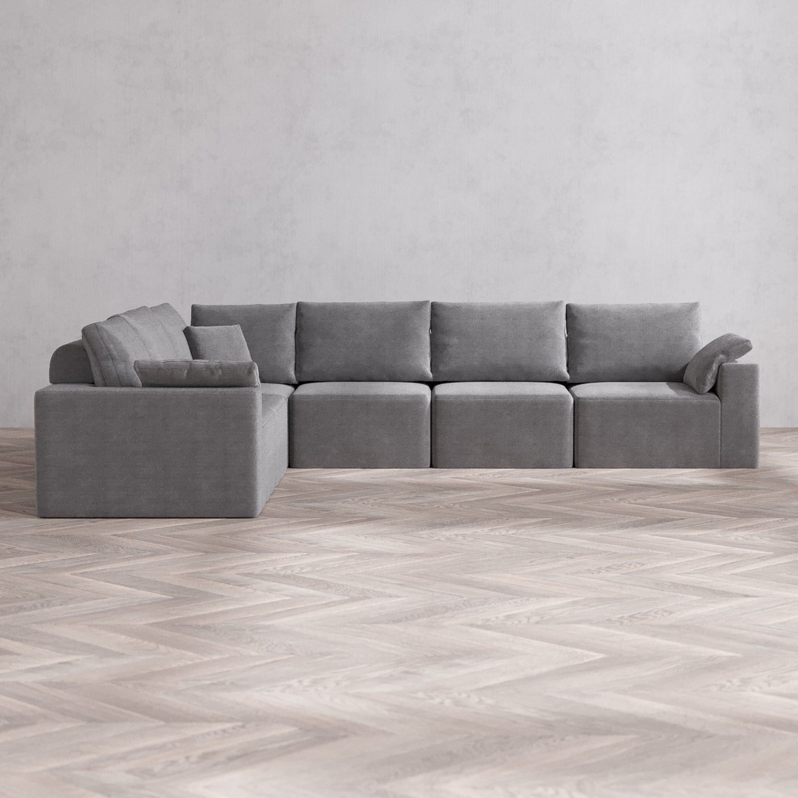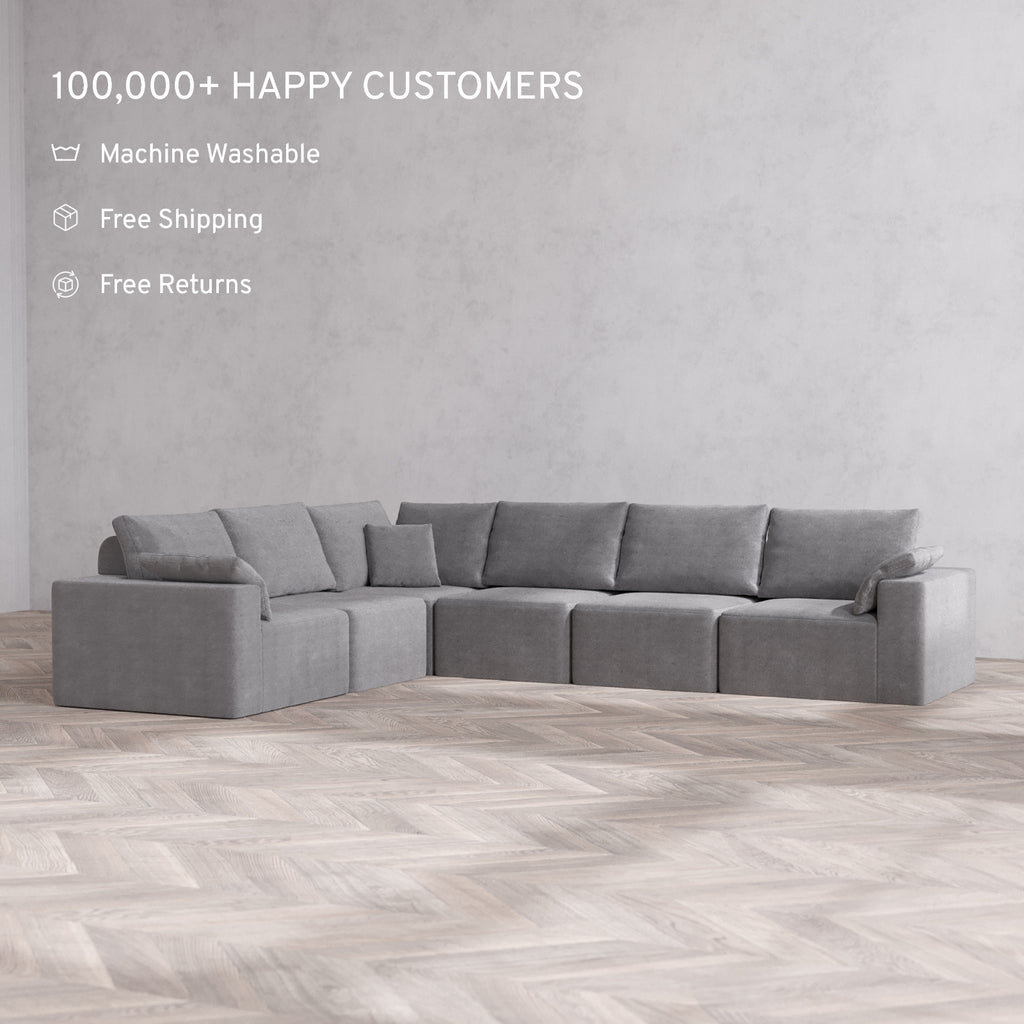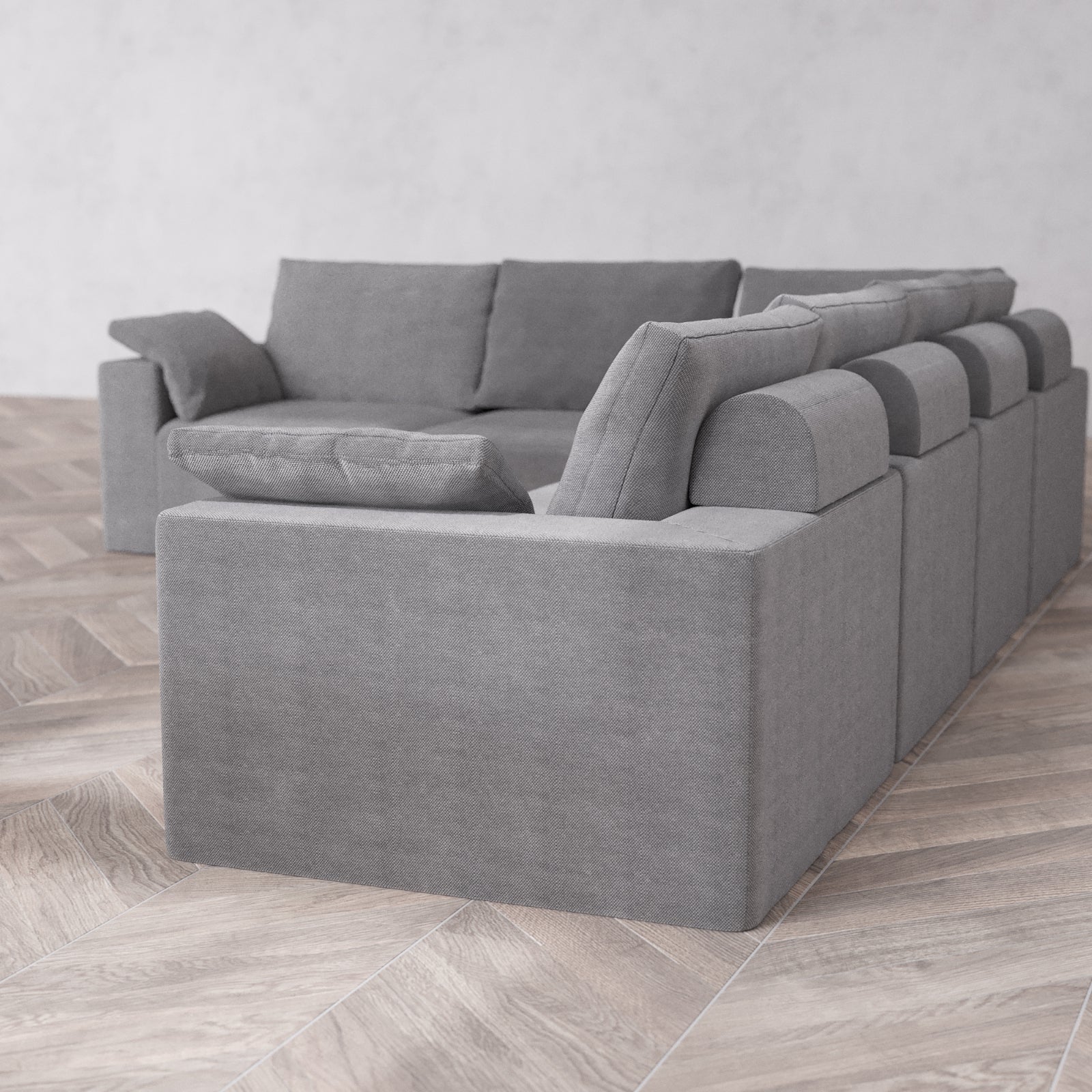 Modular Washable 6-Seater Corner Sectional Cloud + Bolster Sofa | Lux Weave in Slate