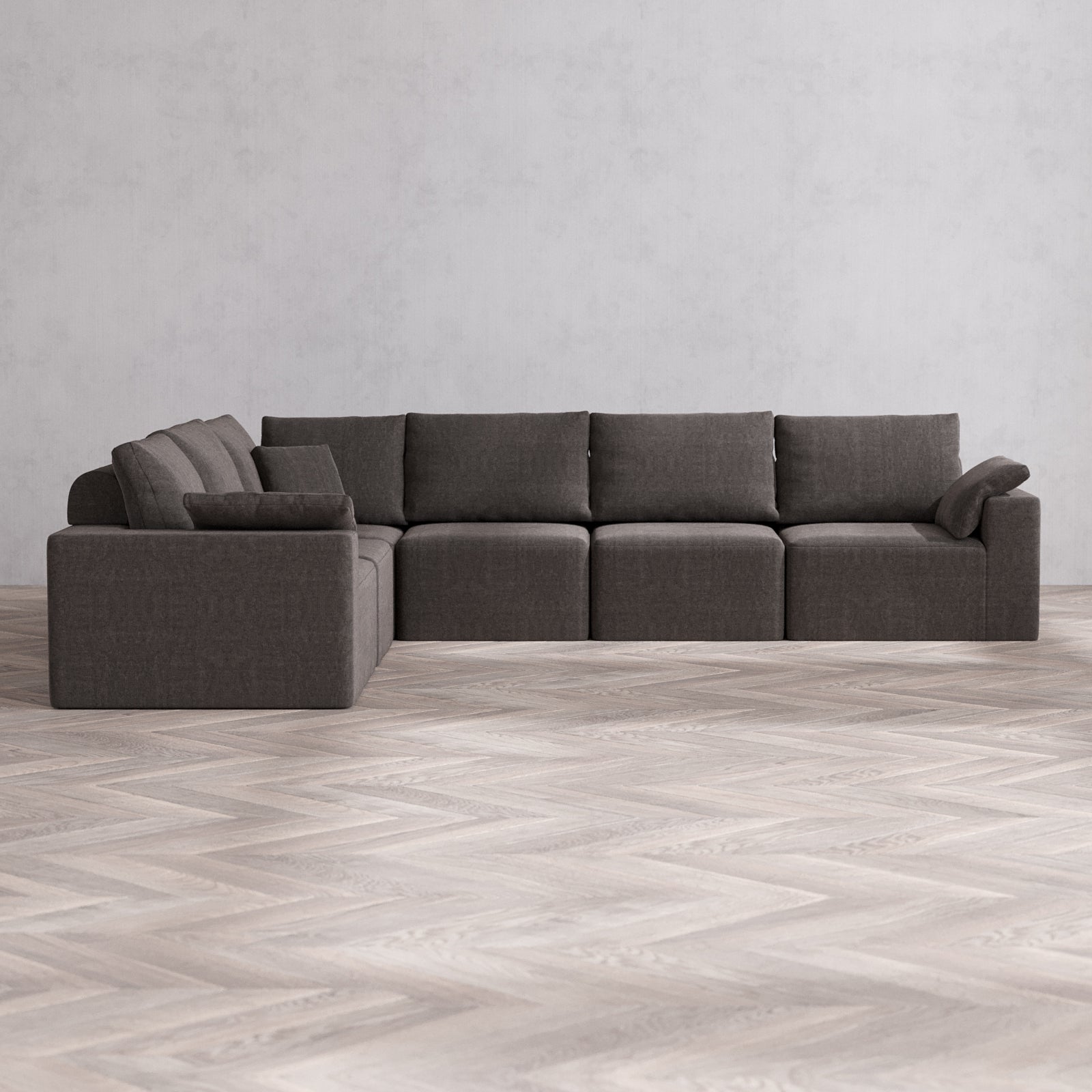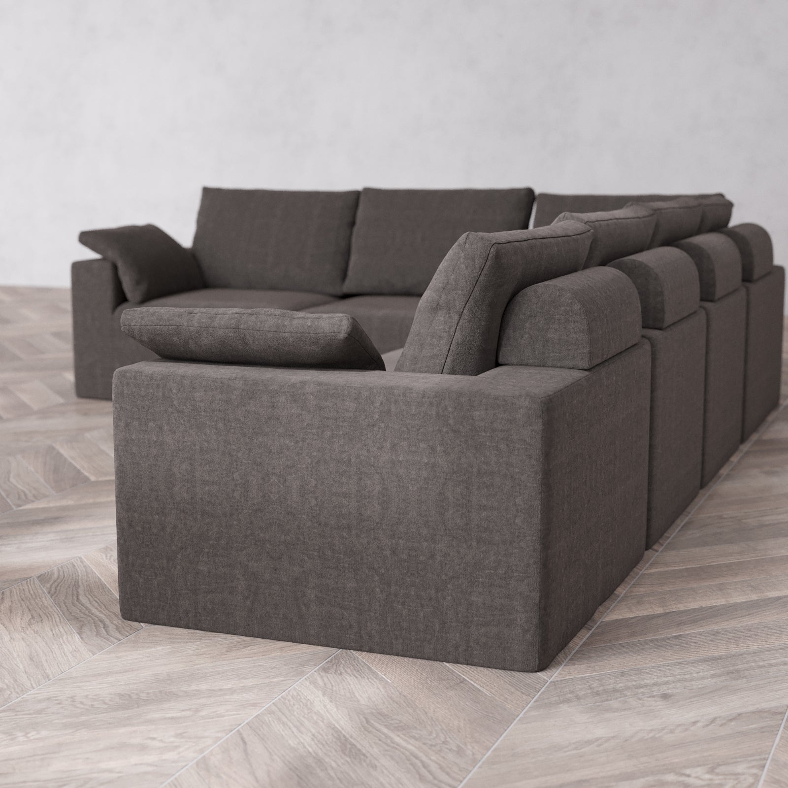 Modular Washable 6-Seater Corner Sectional Cloud + Bolster Sofa | Heirloom Velvet in Truffle
