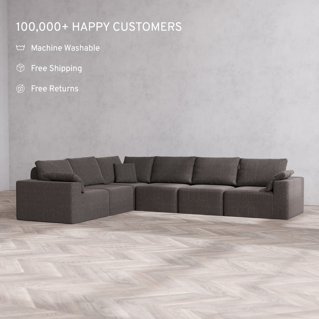 The Only Washable Cloud Sofa: With a waterproof frame and fabrics that resist pets, stains, and spills, this sofa is made to handle everyday messes. Our patent-pending covers are machine washable and fully interchangeable—buy extra sets to change up your look anytime.