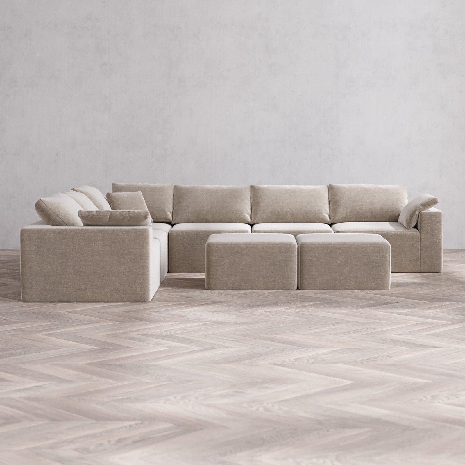 Modular Washable 6-Seater Corner Sectional + Ottoman Bench Cloud Sofa | Satin Velvet in Caraway