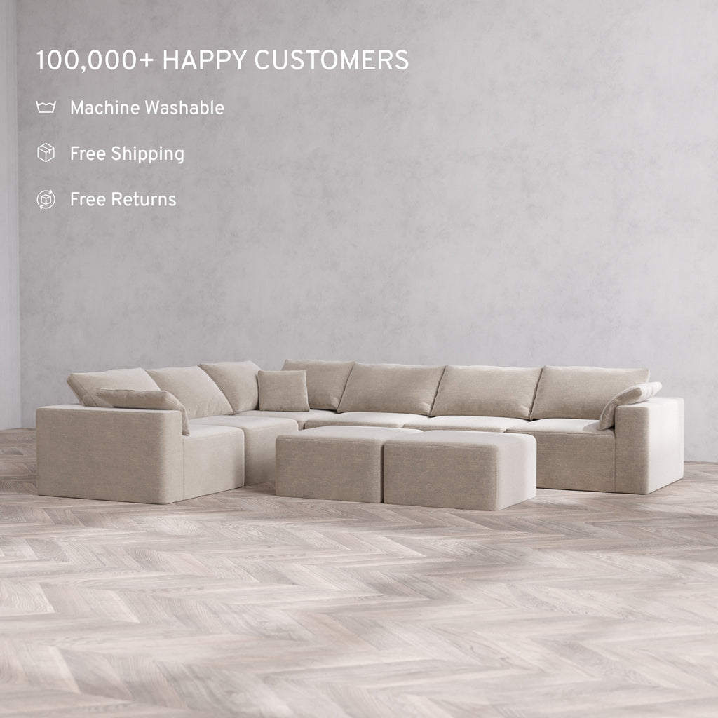 The Only Washable Cloud Sofa: With a waterproof frame and fabrics that resist pets, stains, and spills, this sofa is made to handle everyday messes. Our patent-pending covers are machine washable and fully interchangeable—buy extra sets to change up your look anytime.