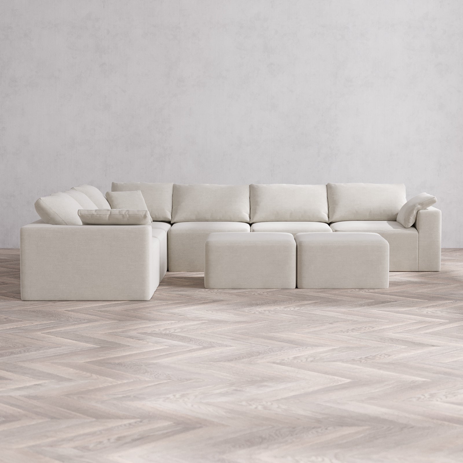 Modular Washable 6-Seater Corner Sectional + Ottoman Bench Cloud Sofa | Satin Velvet in Cashew