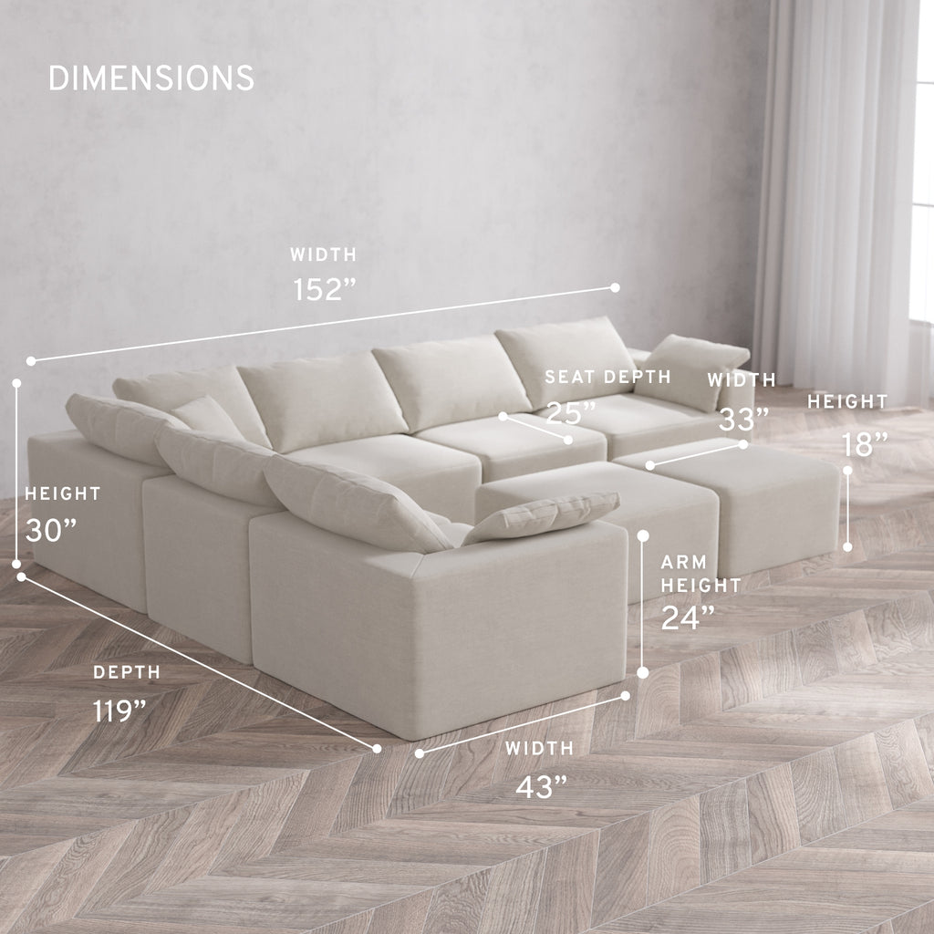 Machine Washable: Every piece of fabric—including the internal quilted duvet—is fully removable and machine washable. It’s the only Cloud-style sofa you can truly deep clean, effortlessly.