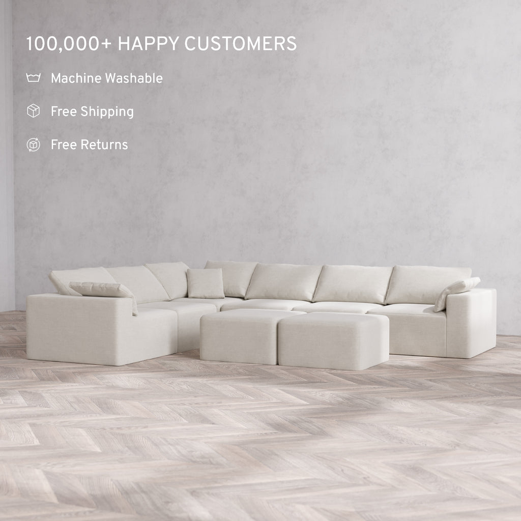 The Only Washable Cloud Sofa: With a waterproof frame and fabrics that resist pets, stains, and spills, this sofa is made to handle everyday messes. Our patent-pending covers are machine washable and fully interchangeable—buy extra sets to change up your look anytime.