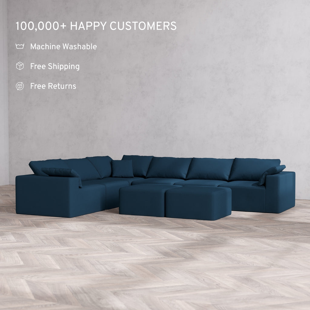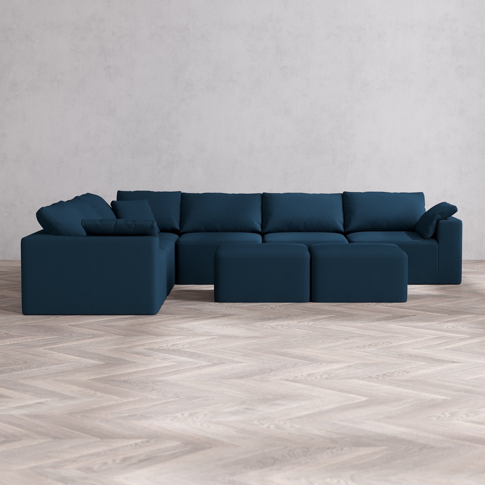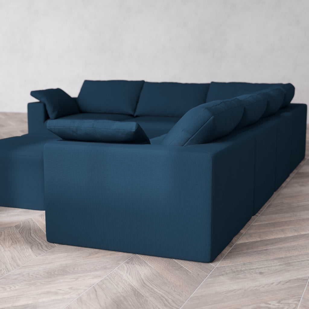 Modular Washable 6-Seater Corner Sectional + Ottoman Bench Cloud Sofa | Arden Weave in Lazuli