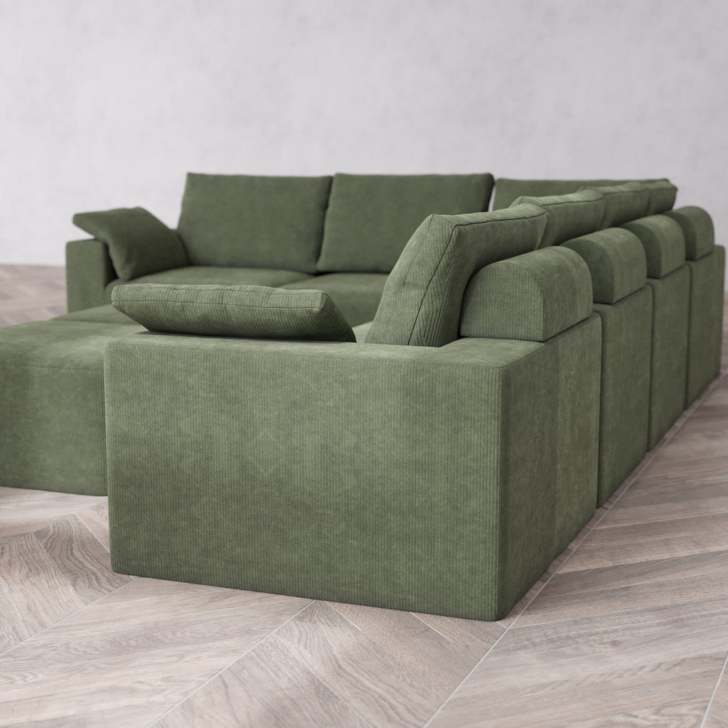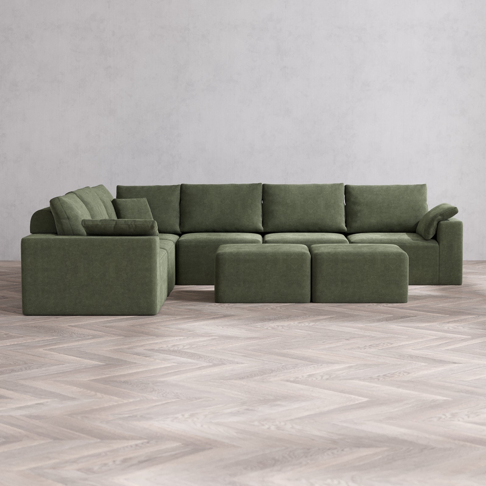 Modular Washable 6-Seater Corner Sectional + Ottoman Bench Cloud + Bolster Sofa | Luxe Corduroy in Juniper
