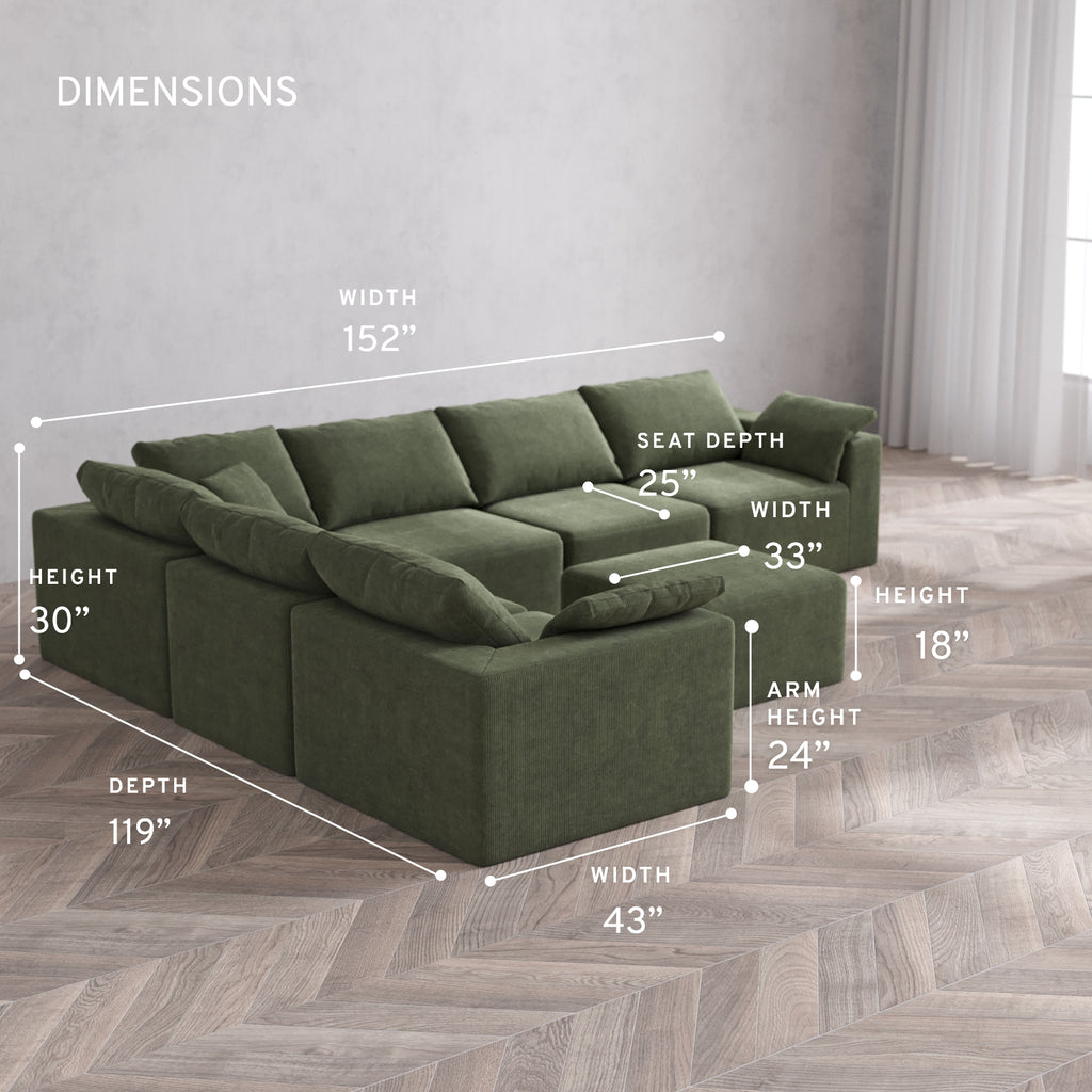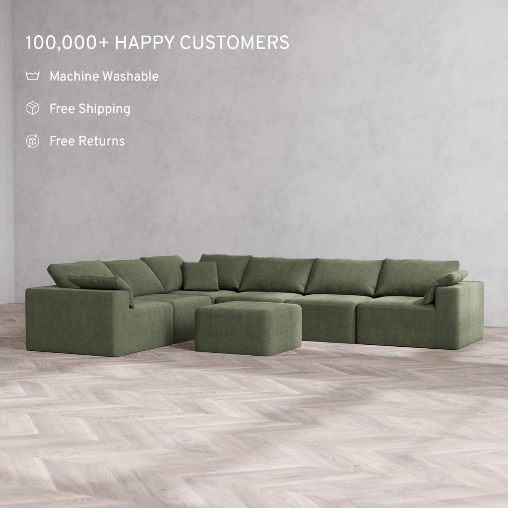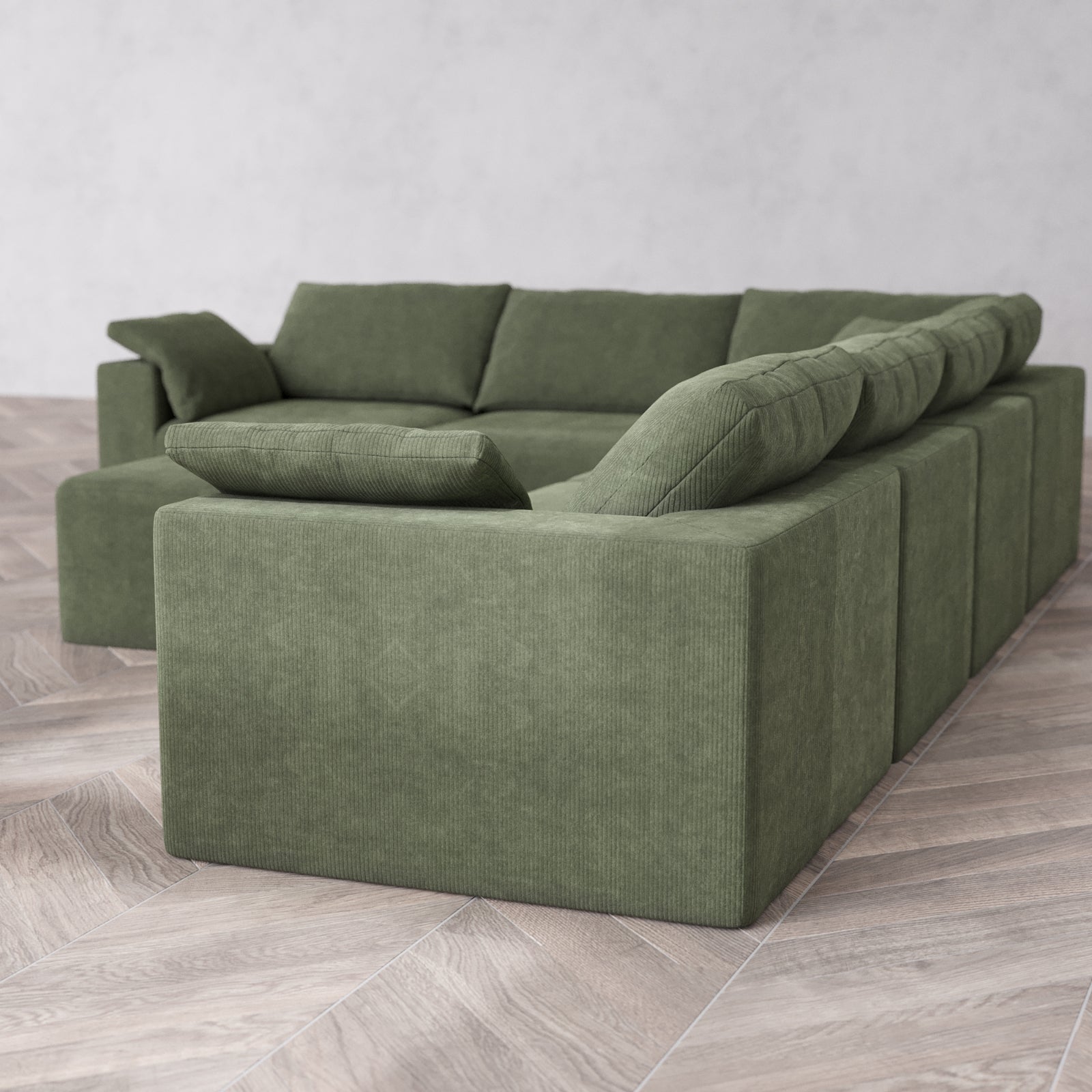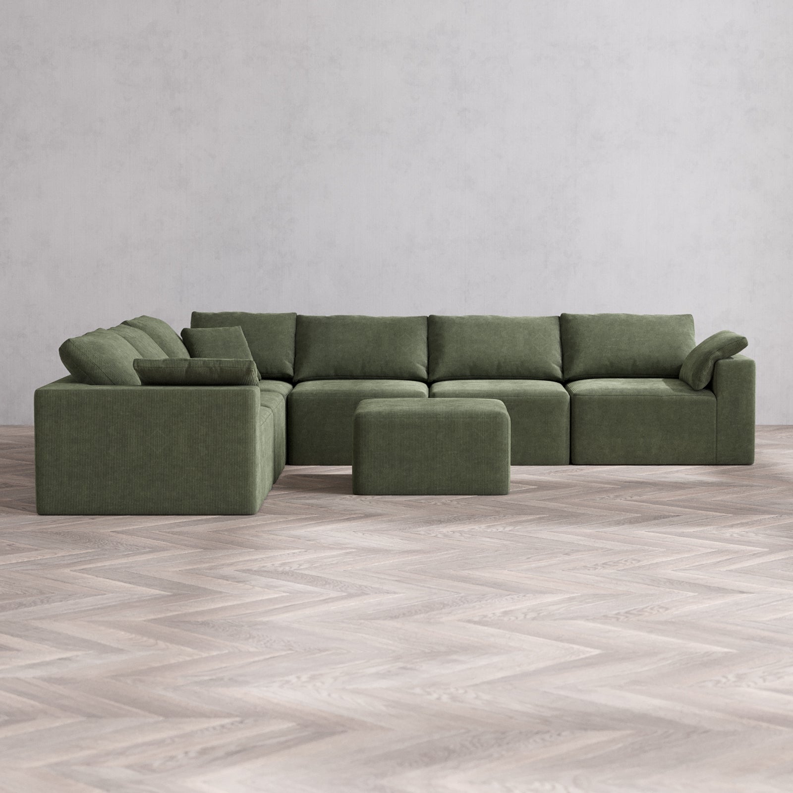 Modular Washable 6-Seater Corner Sectional + Ottoman Cloud Sofa | Luxe Corduroy in Juniper