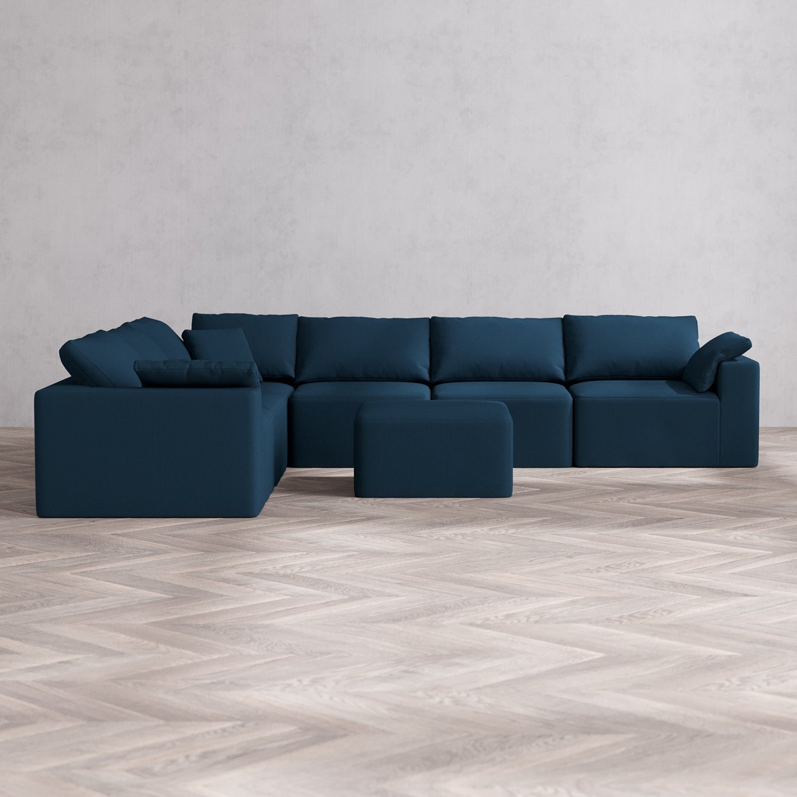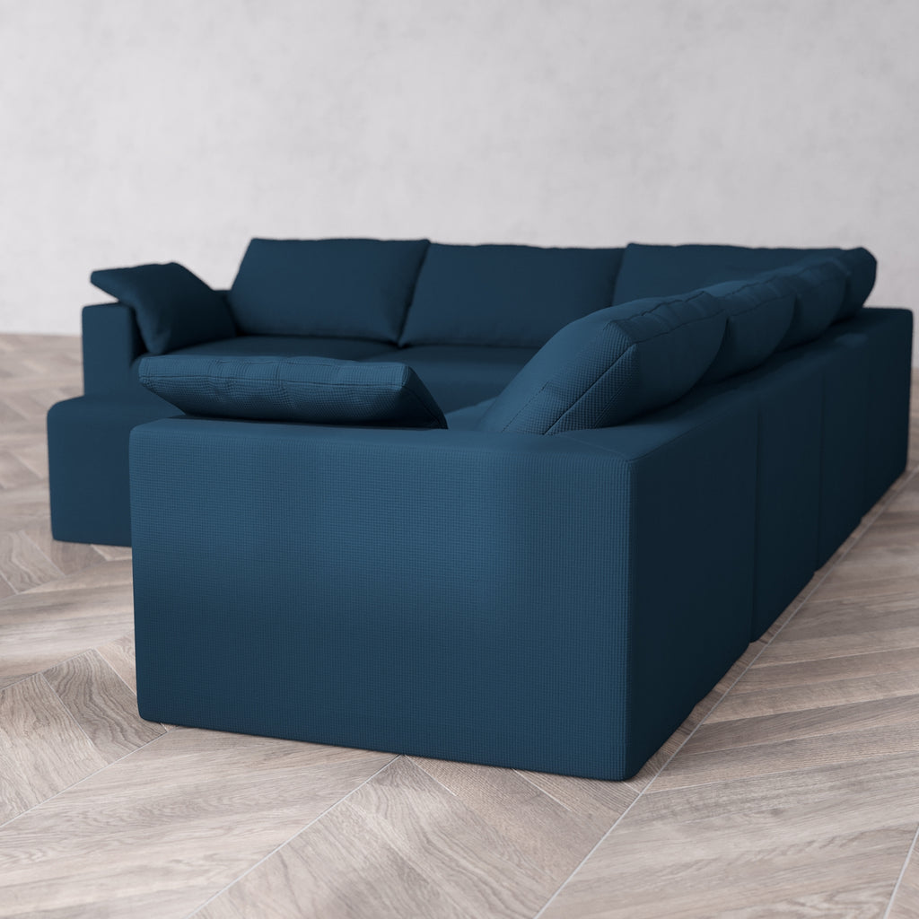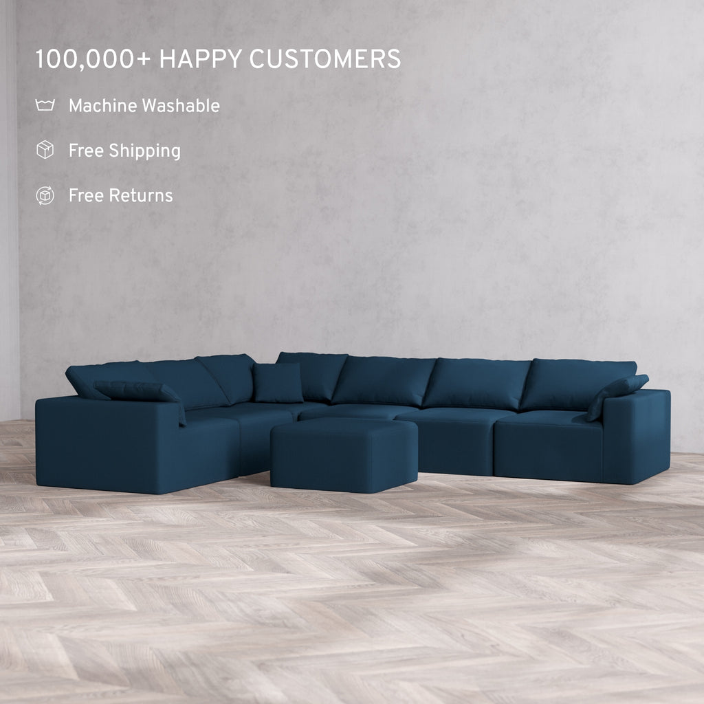 Modular Washable 6-Seater Corner Sectional + Ottoman Cloud Sofa | Arden Weave in Lazuli