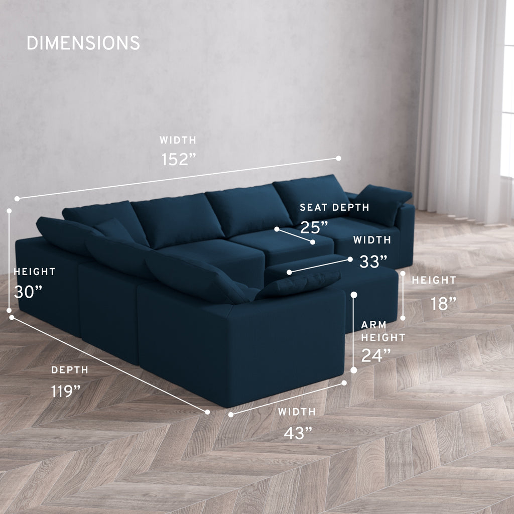 Machine Washable: Every piece of fabric—including the internal quilted duvet—is fully removable and machine washable. It’s the only Cloud-style sofa you can truly deep clean, effortlessly.