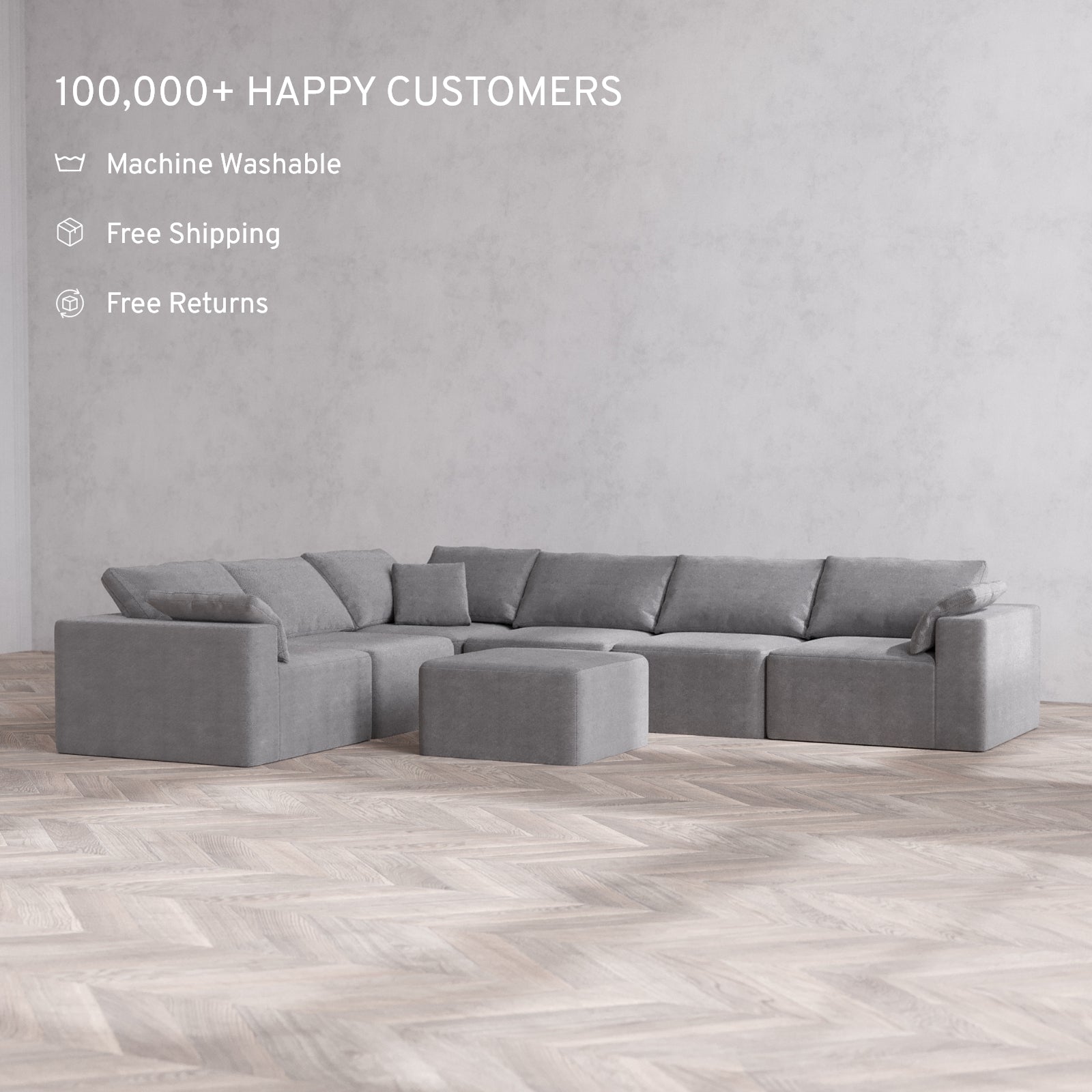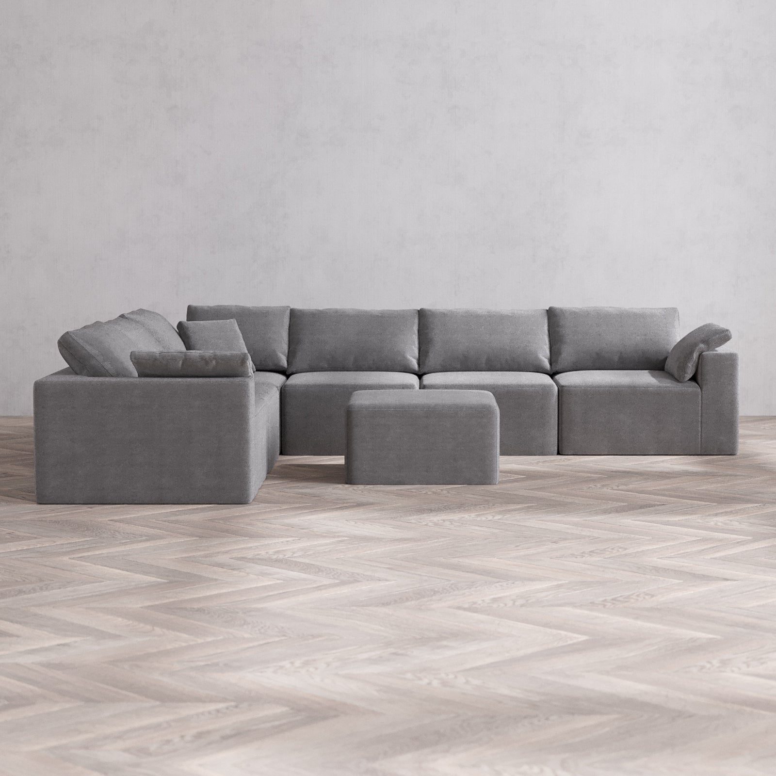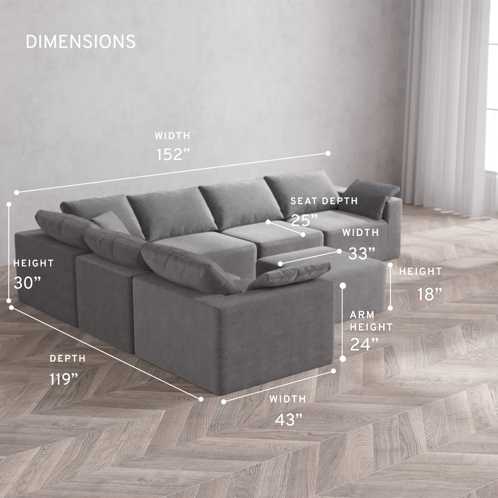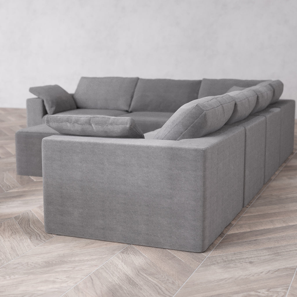 Modular Washable 6-Seater Corner Sectional + Ottoman Cloud Sofa | Lux Weave in Slate