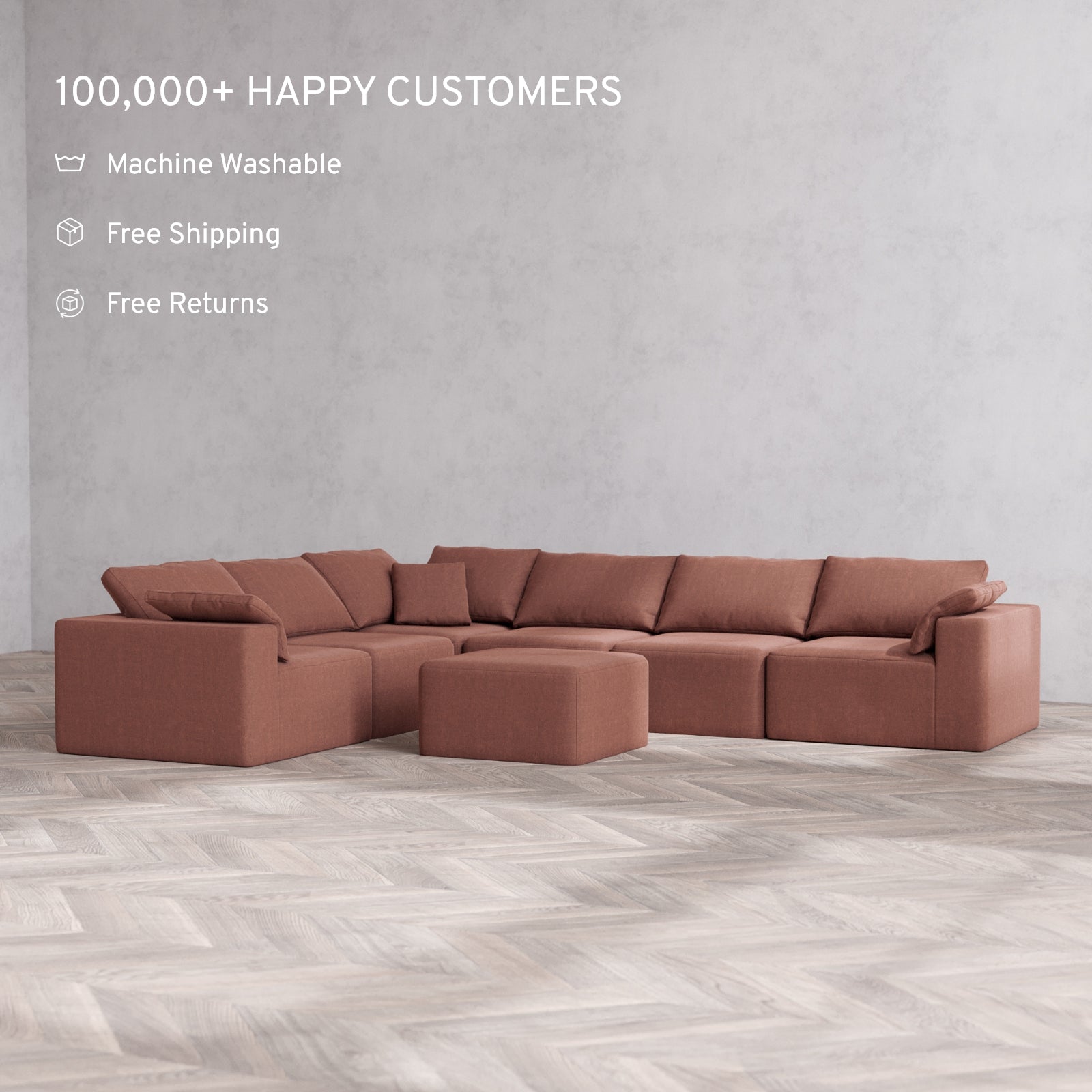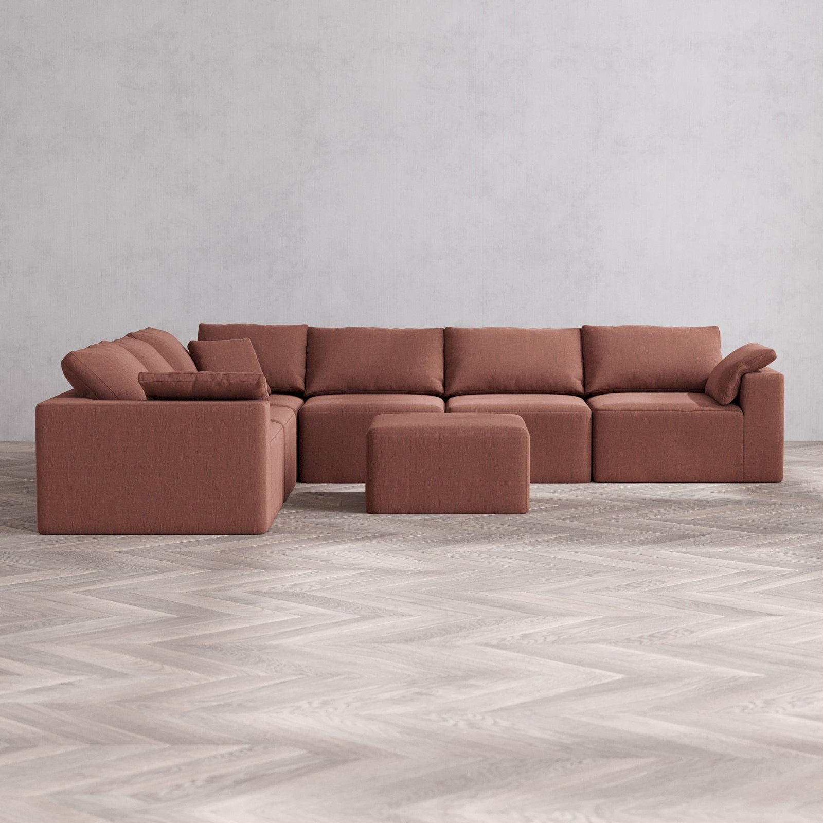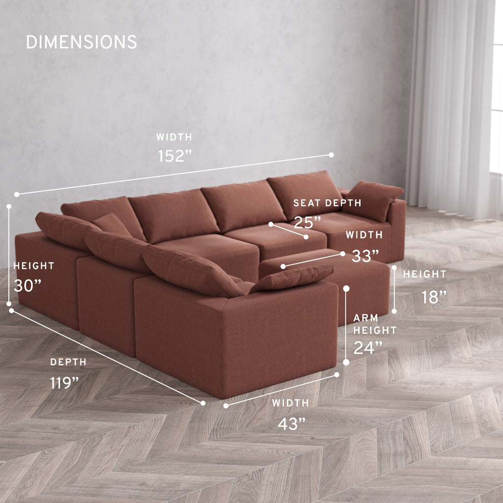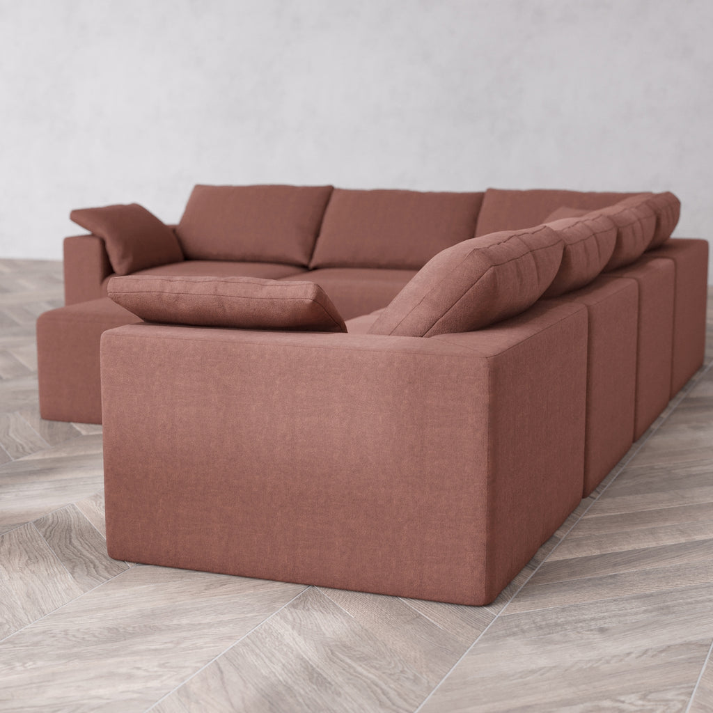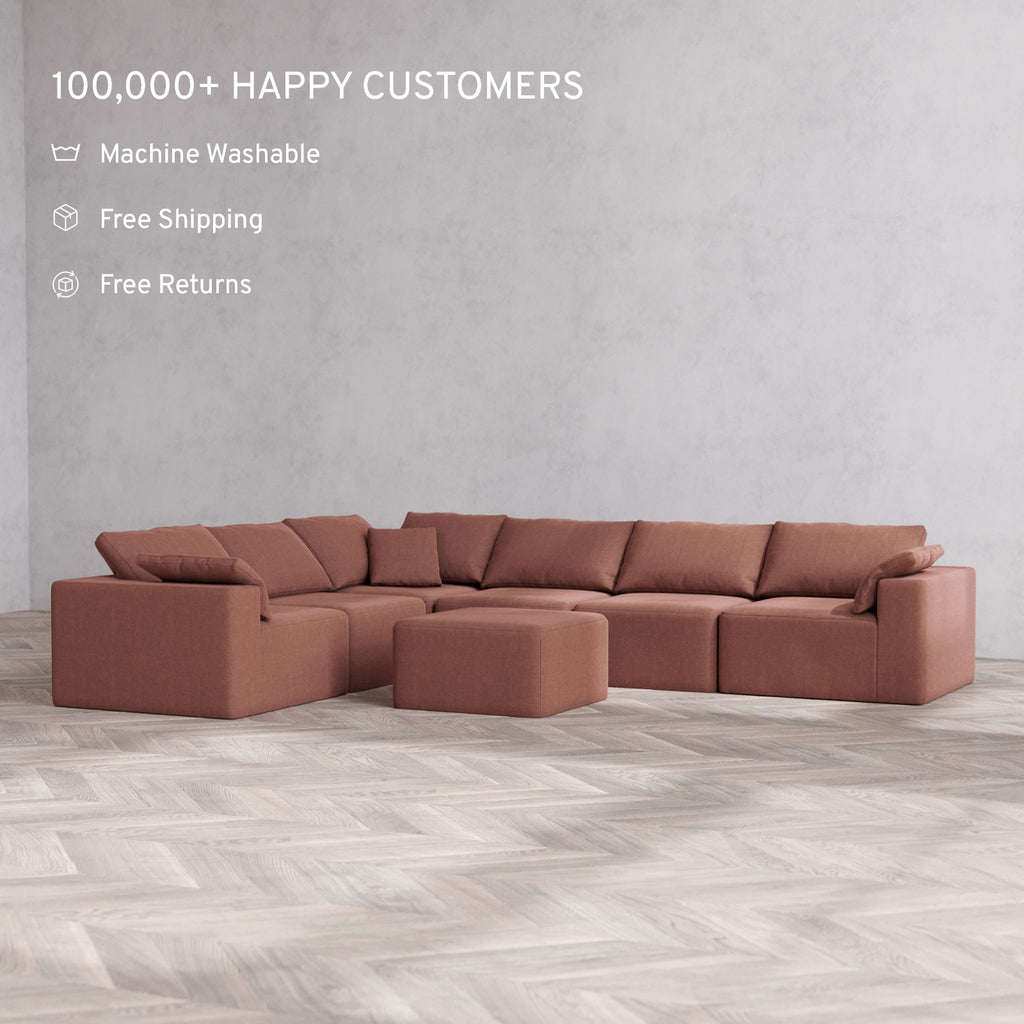 Modular Washable 6-Seater Corner Sectional + Ottoman Cloud Sofa | Heirloom Velvet in Sumac