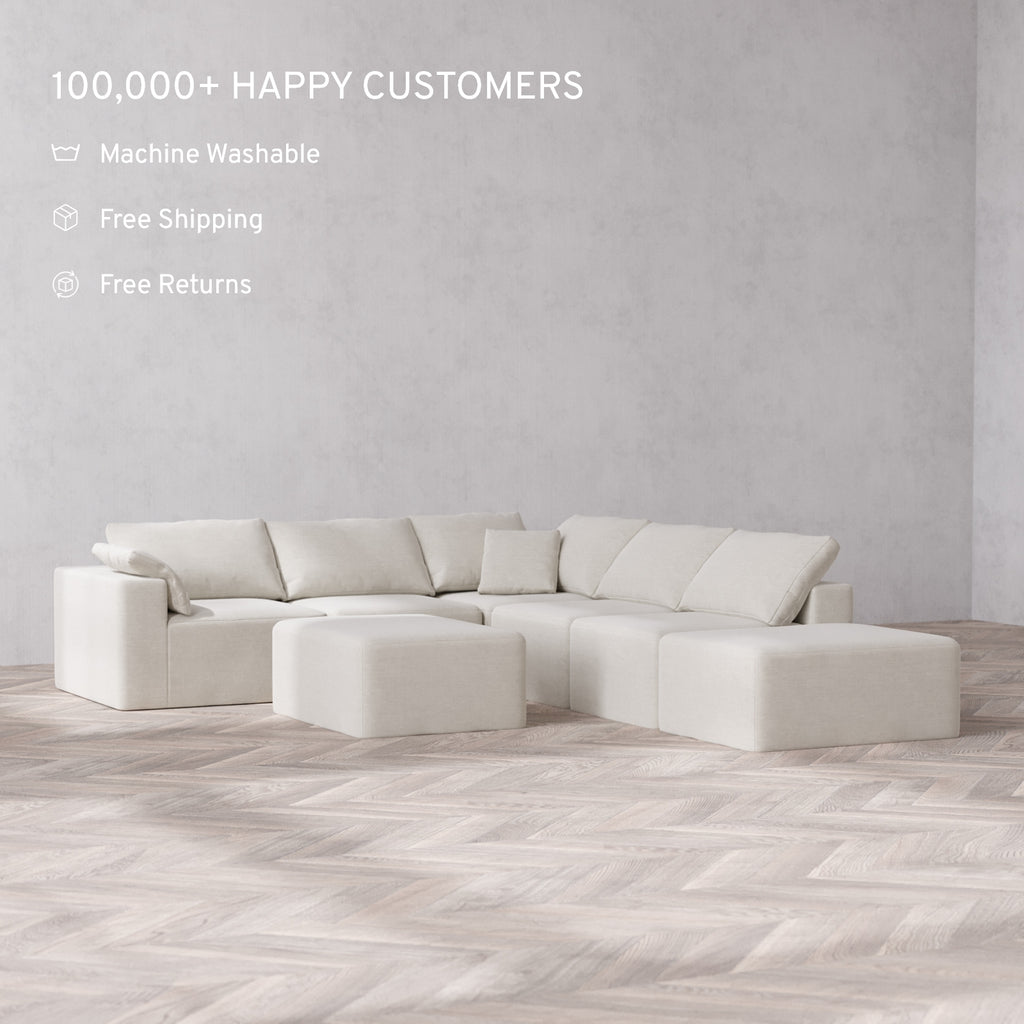 The Only Washable Cloud Sofa: With a waterproof frame and fabrics that resist pets, stains, and spills, this sofa is made to handle everyday messes. Our patent-pending covers are machine washable and fully interchangeable—buy extra sets to change up your look anytime.