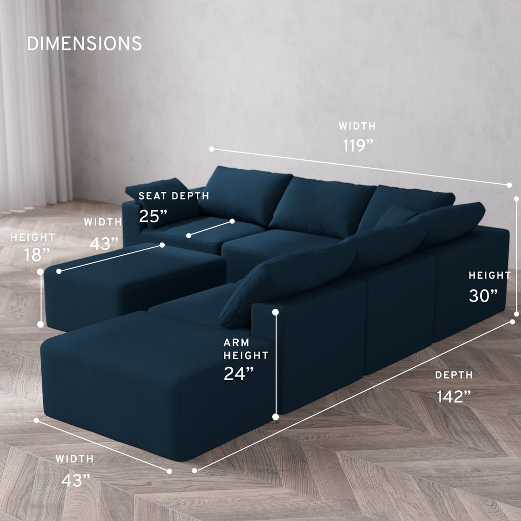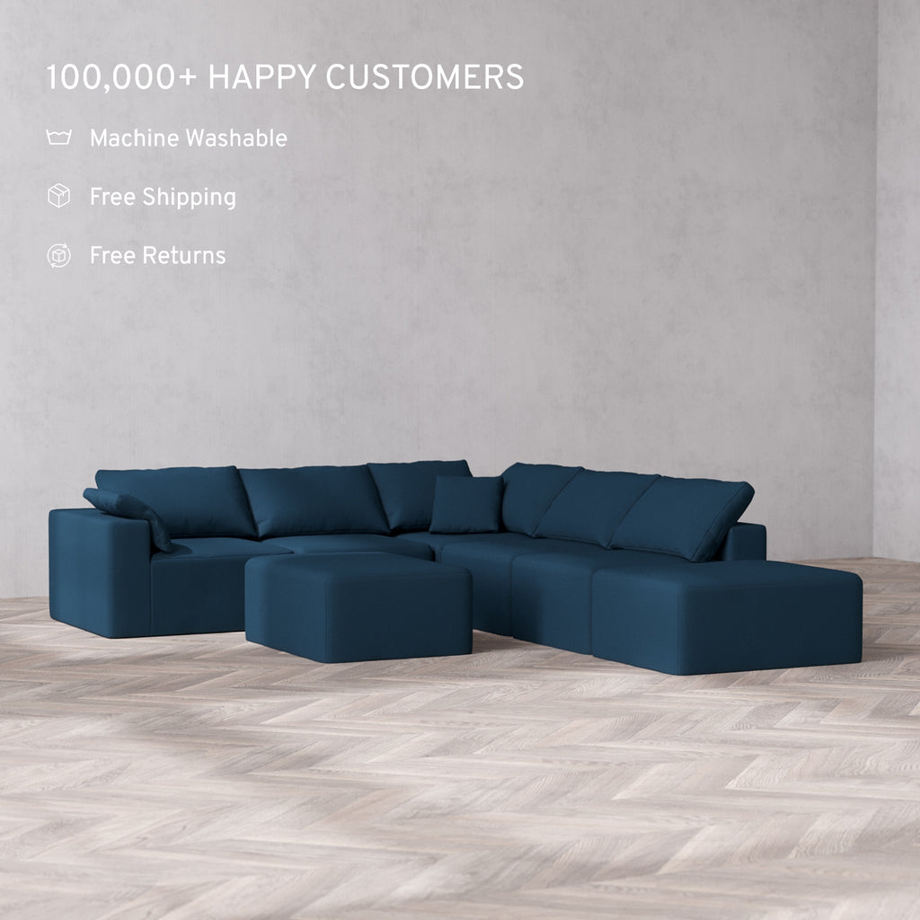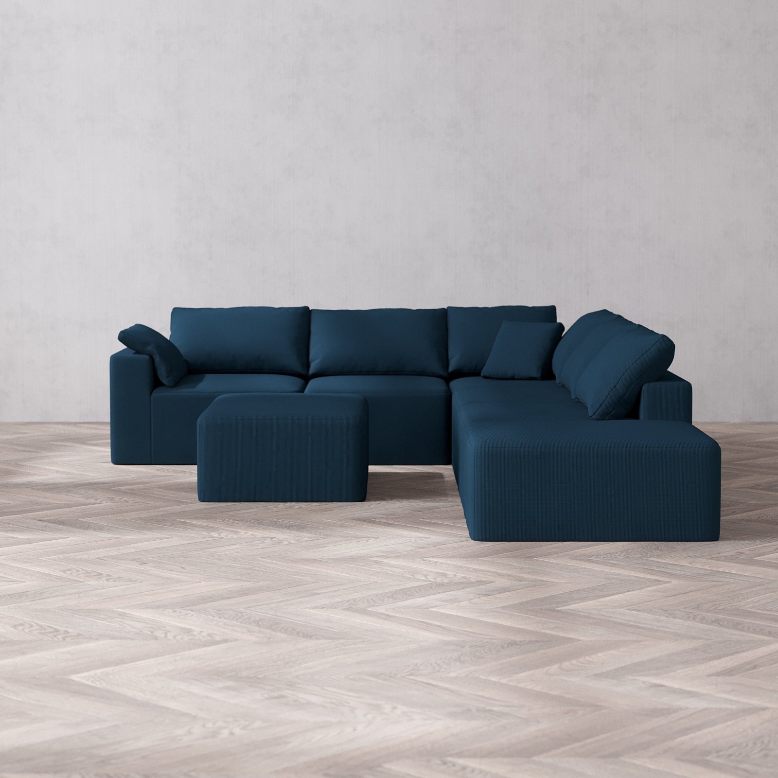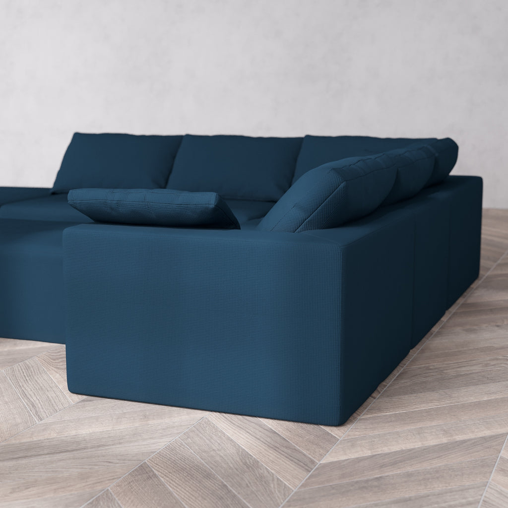 Modular Washable 6-Seater Open End Corner Sectional + Chaise Ottoman Cloud Sofa | Left-Facing Arm | Arden Weave in Lazuli