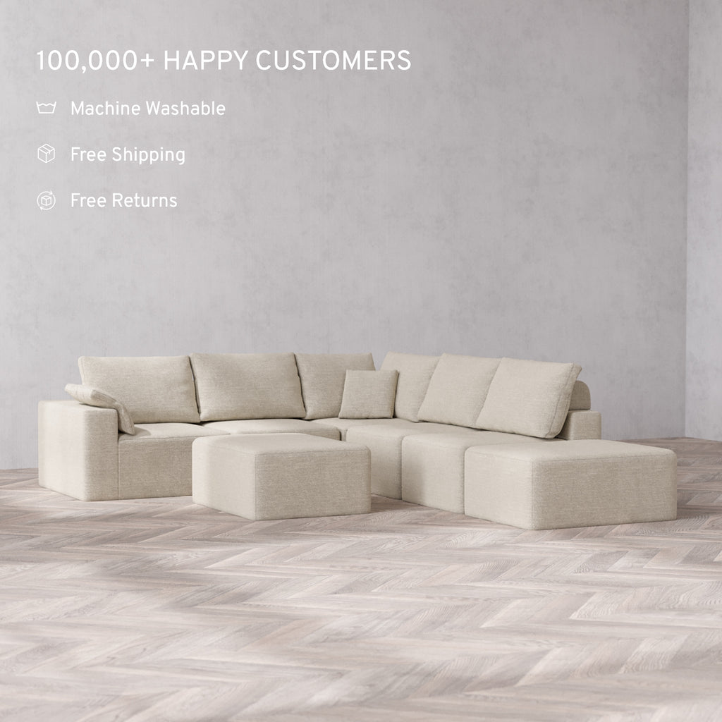 The Only Washable Cloud Sofa: With a waterproof frame and fabrics that resist pets, stains, and spills, this sofa is made to handle everyday messes. Our patent-pending covers are machine washable and fully interchangeable—buy extra sets to change up your look anytime.