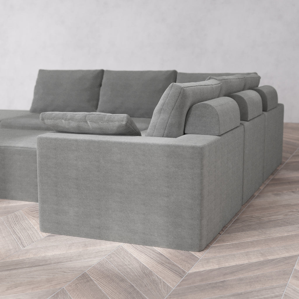 Modular Washable 6-Seater Open End Corner Sectional + Chaise Ottoman Cloud + Bolster Sofa | Left-Facing Arm | Lux Weave in Slate