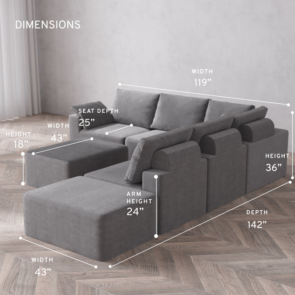 Machine Washable: Every piece of fabric—including the internal quilted duvet—is fully removable and machine washable. It’s the only Cloud-style sofa you can truly deep clean, effortlessly.