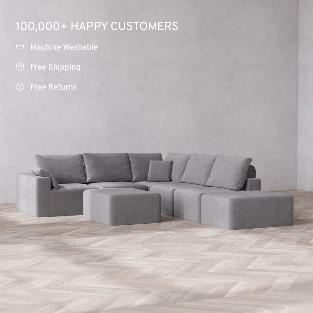 The Only Washable Cloud Sofa: With a waterproof frame and fabrics that resist pets, stains, and spills, this sofa is made to handle everyday messes. Our patent-pending covers are machine washable and fully interchangeable—buy extra sets to change up your look anytime.