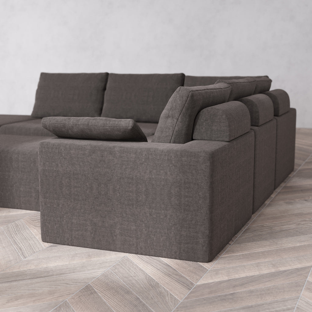 Modular Washable 6-Seater Open End Corner Sectional + Chaise Ottoman Cloud + Bolster Sofa | Left-Facing Arm | Heirloom Velvet in Truffle