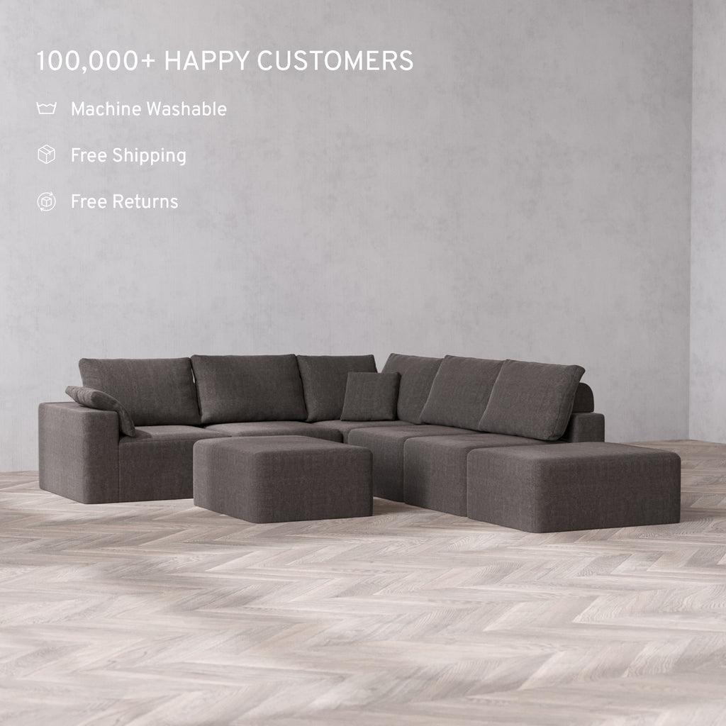 The Only Washable Cloud Sofa: With a waterproof frame and fabrics that resist pets, stains, and spills, this sofa is made to handle everyday messes. Our patent-pending covers are machine washable and fully interchangeable—buy extra sets to change up your look anytime.