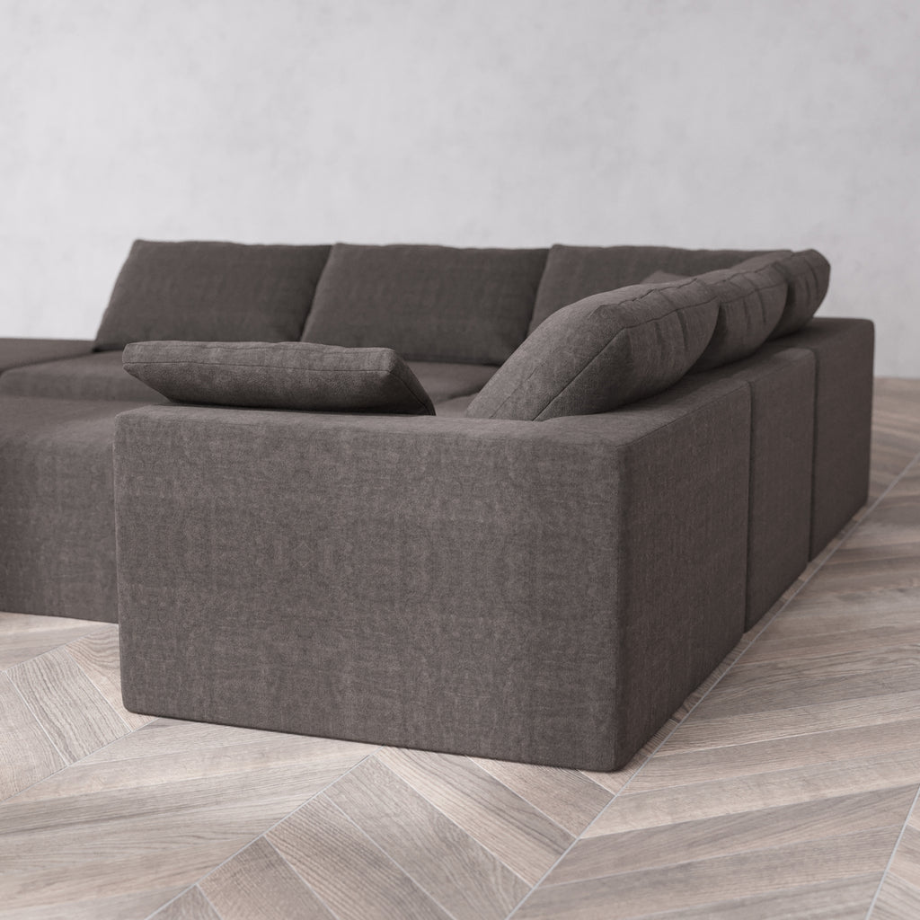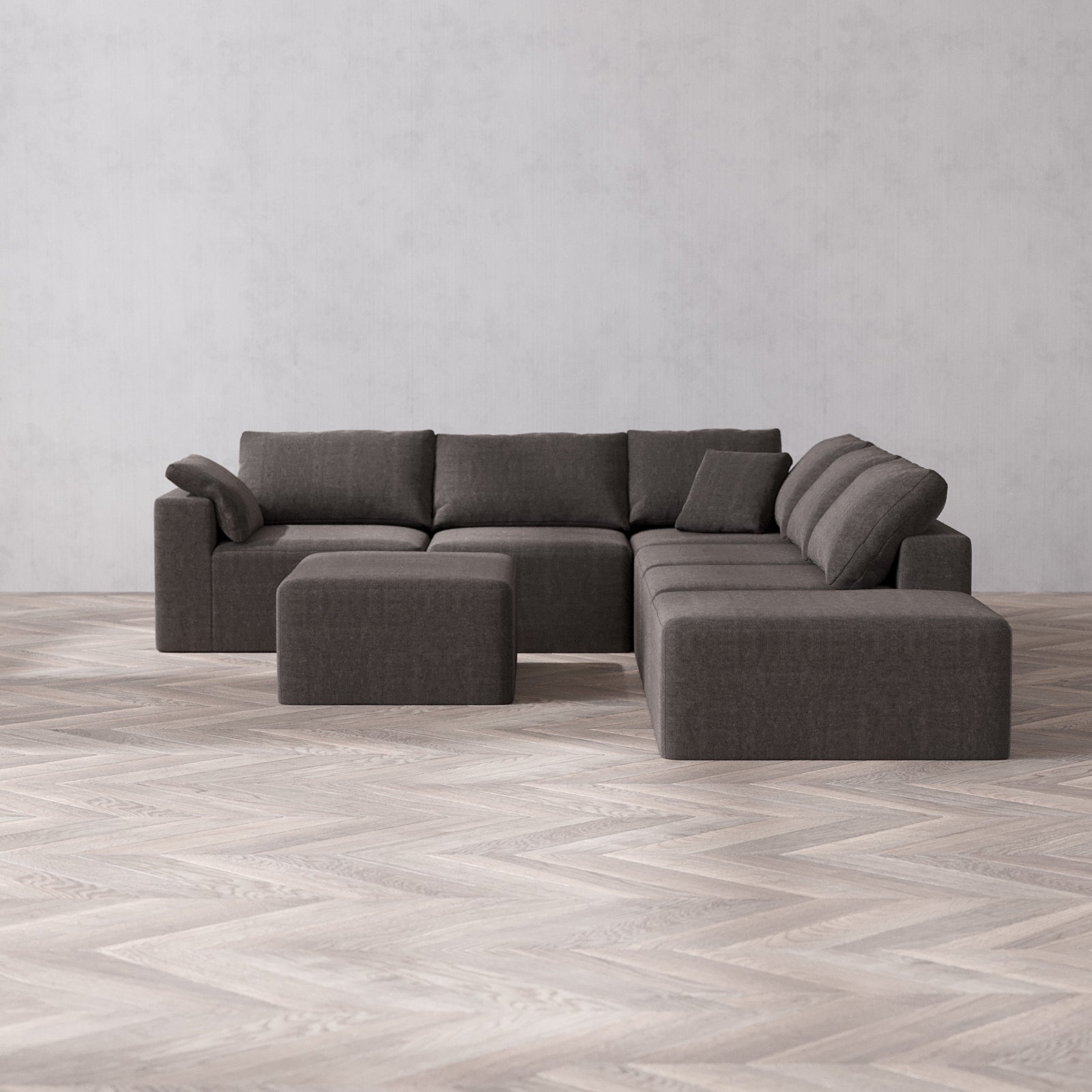 Modular Washable 6-Seater Open End Corner Sectional + Chaise Ottoman Cloud Sofa | Left-Facing Arm | Heirloom Velvet in Truffle