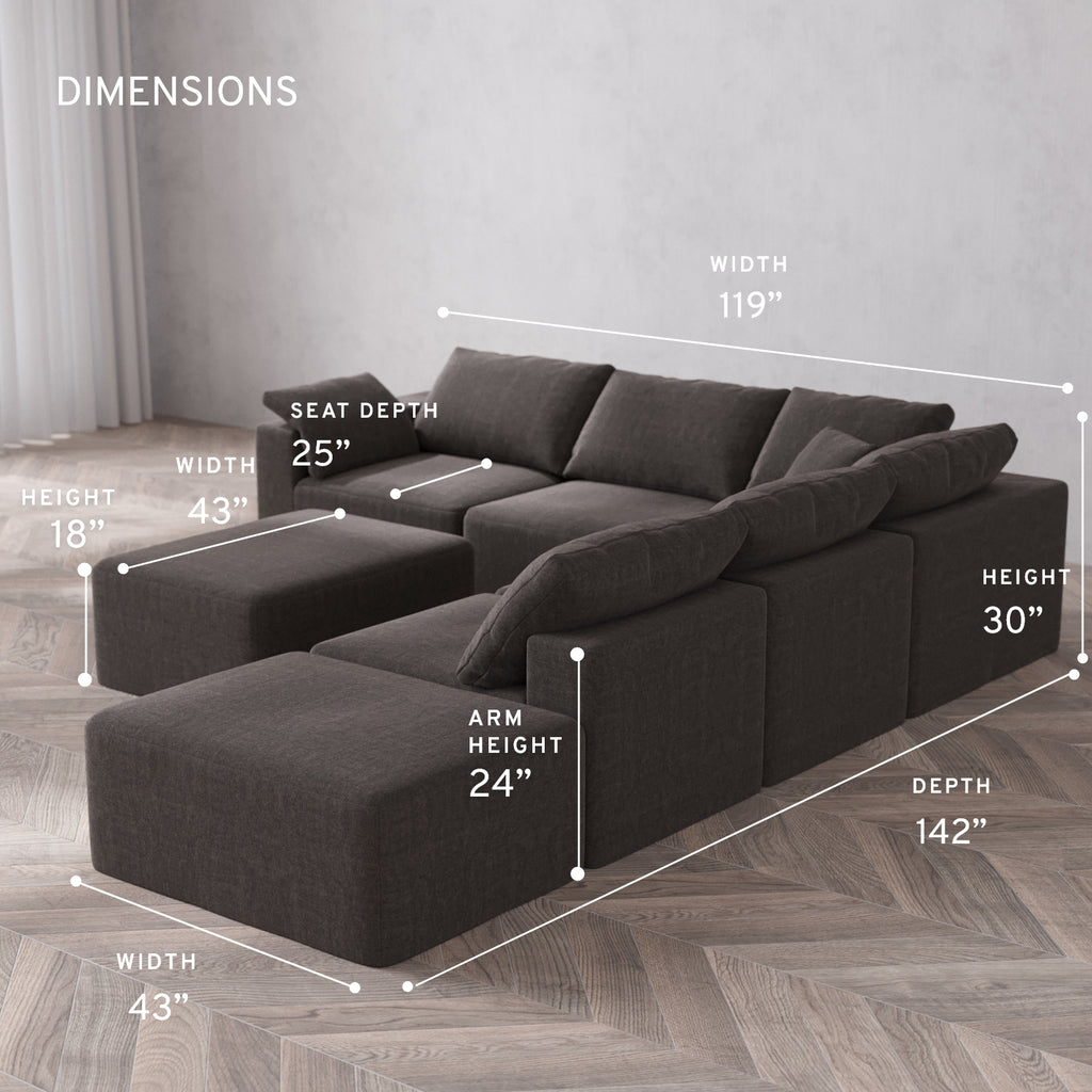 Machine Washable: Every piece of fabric—including the internal quilted duvet—is fully removable and machine washable. It’s the only Cloud-style sofa you can truly deep clean, effortlessly.
