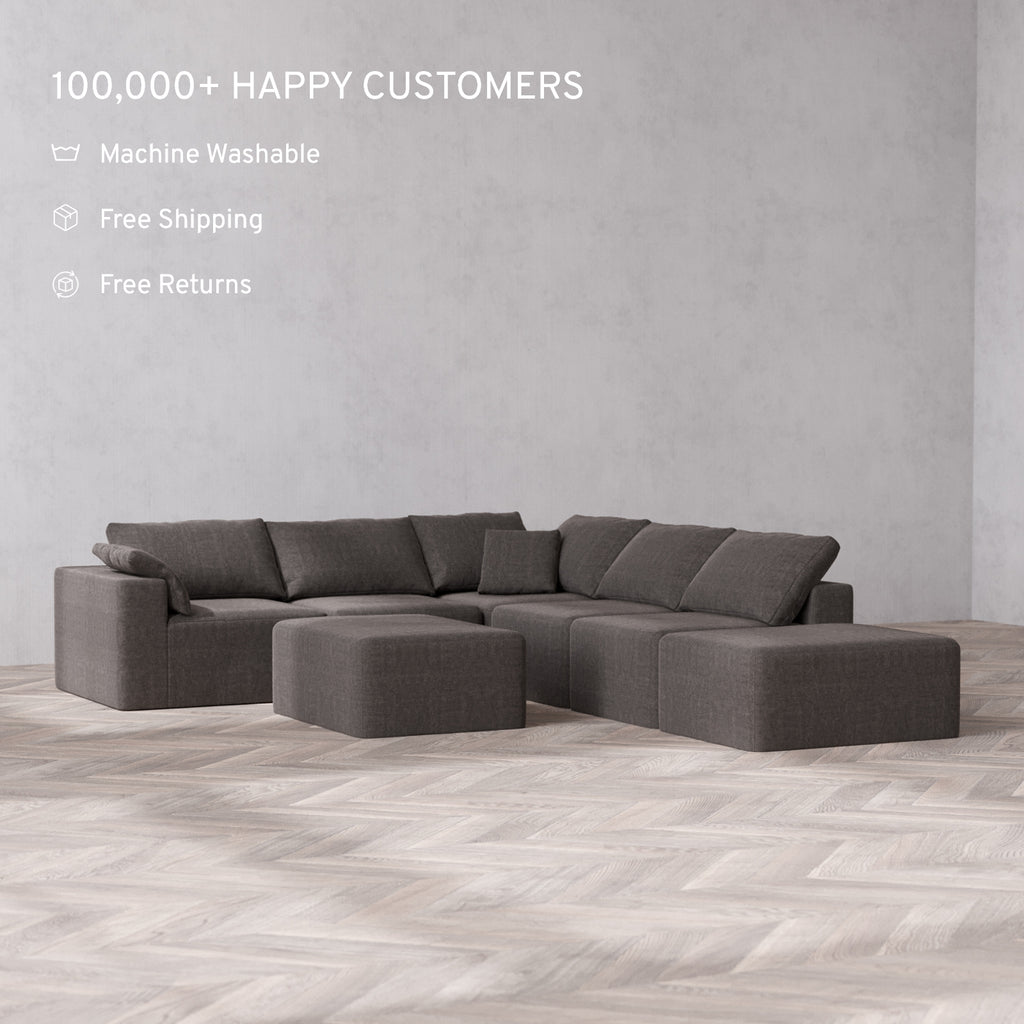 The Only Washable Cloud Sofa: With a waterproof frame and fabrics that resist pets, stains, and spills, this sofa is made to handle everyday messes. Our patent-pending covers are machine washable and fully interchangeable—buy extra sets to change up your look anytime.