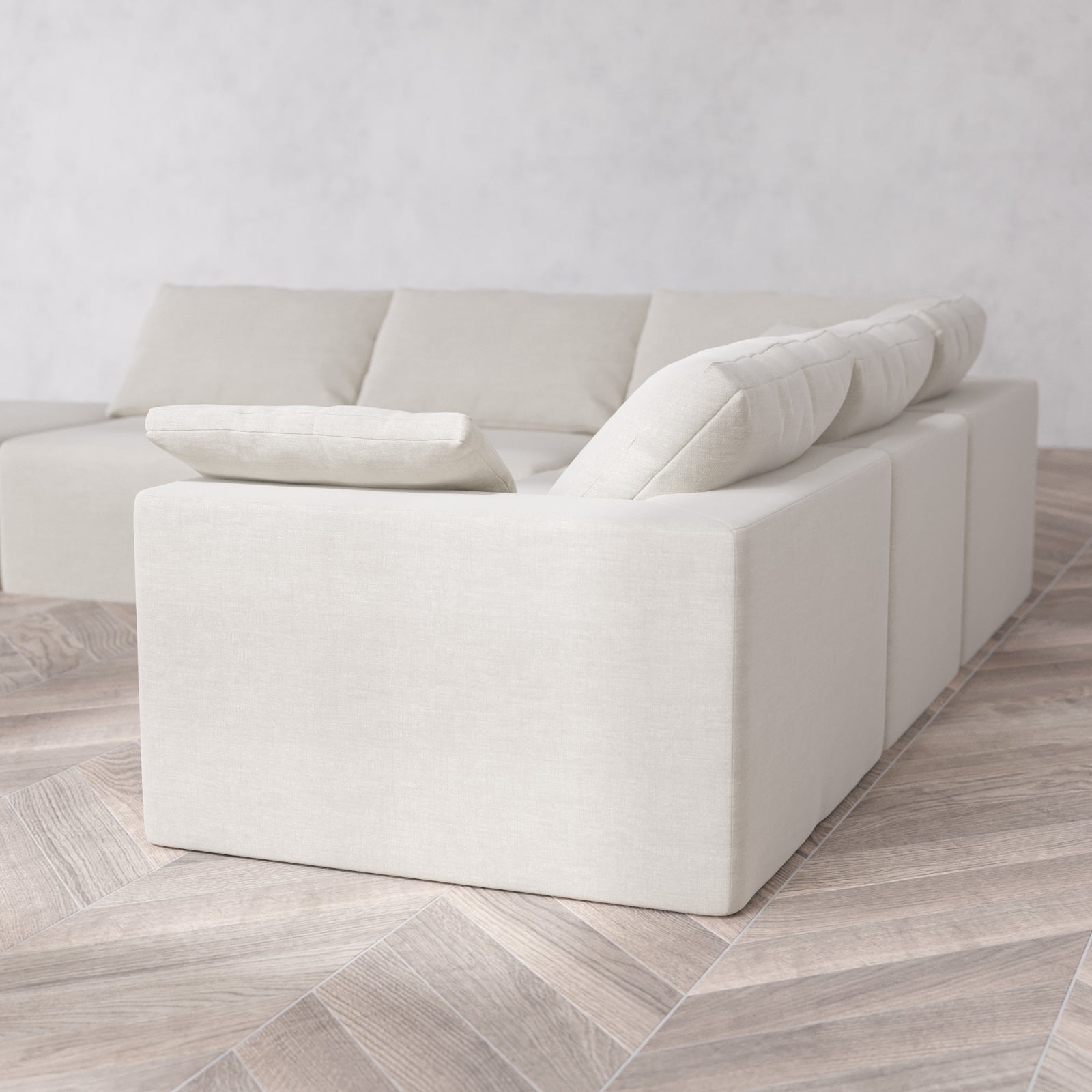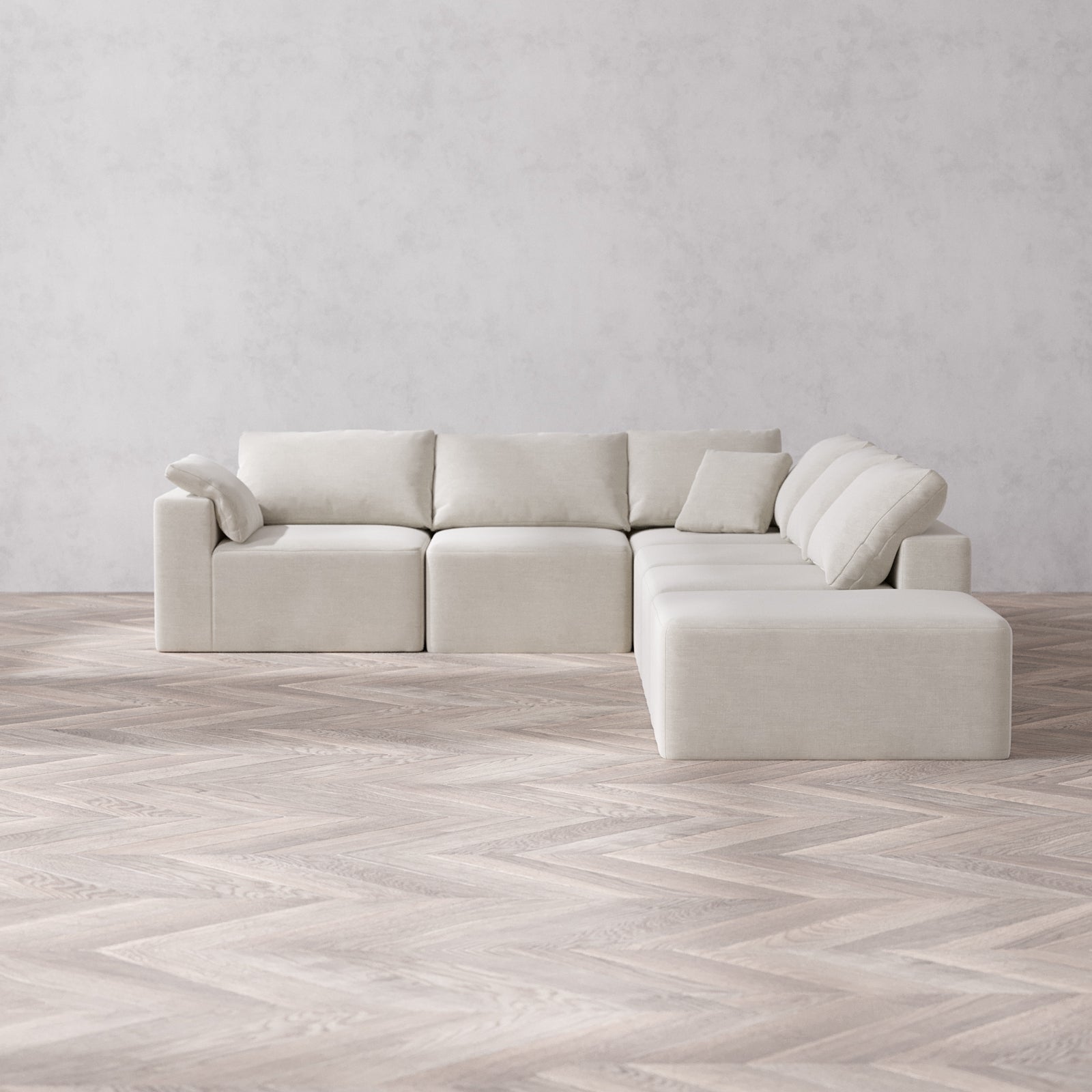 Modular Washable 6-Seater Open End Corner Sectional Cloud Sofa | Left-Facing Arm | Satin Velvet in Cashew