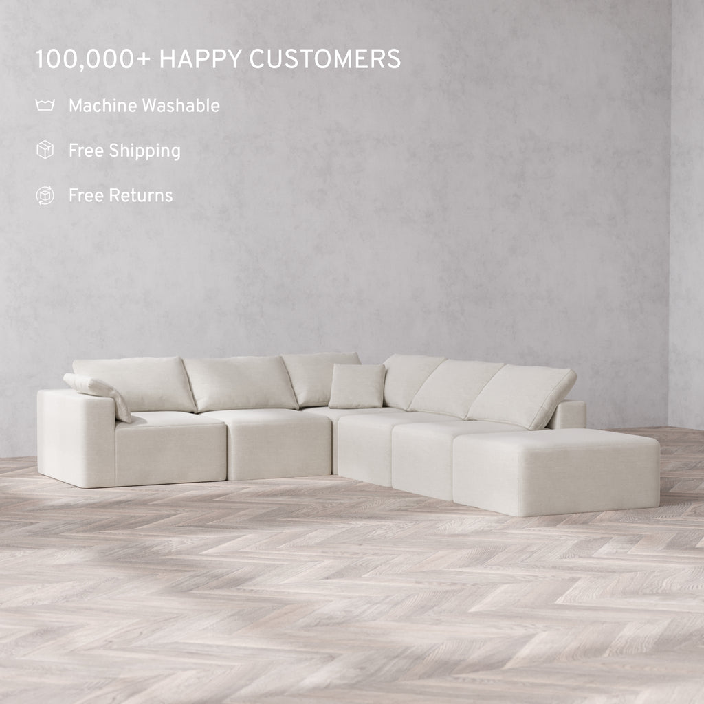 The Only Washable Cloud Sofa: With a waterproof frame and fabrics that resist pets, stains, and spills, this sofa is made to handle everyday messes. Our patent-pending covers are machine washable and fully interchangeable—buy extra sets to change up your look anytime.